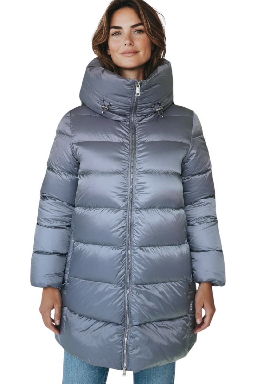 PIUMINO SVASATO LISCIO ADD DA DONNA CON COLLO AVVOLGENTE, CHIUSURA CON ZIP IN METALLO A DOPPIO CURSORE, MANICA 3/4 CON MANICOTTI STACCABILI, VESTIBILITA' REGOLARE, DUE TASCHE ESTERNE CON BOTTONE AUTOMATICO, TESSUTO IN DOWNPROOF ULTRARESISTENTE, IMBOTTITO IN VERA PIUMA D'OCA CERTIFICATA, LOGO RICAMATO SULLA TASCA, IDROREPELLENTE, COLORE BLUAZZURRO