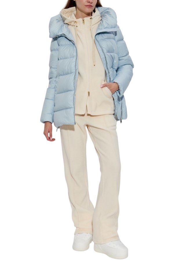 Materiali accuratamente selezionati (uno strato esterno in poliestere resistente e delicatamente scintillante, un interno perfettamente isolante in morbida poliammide e un'imbottitura in piumino e piume naturali) garantiscono un comfort termico eccezionale e protezione dalle intemperie.