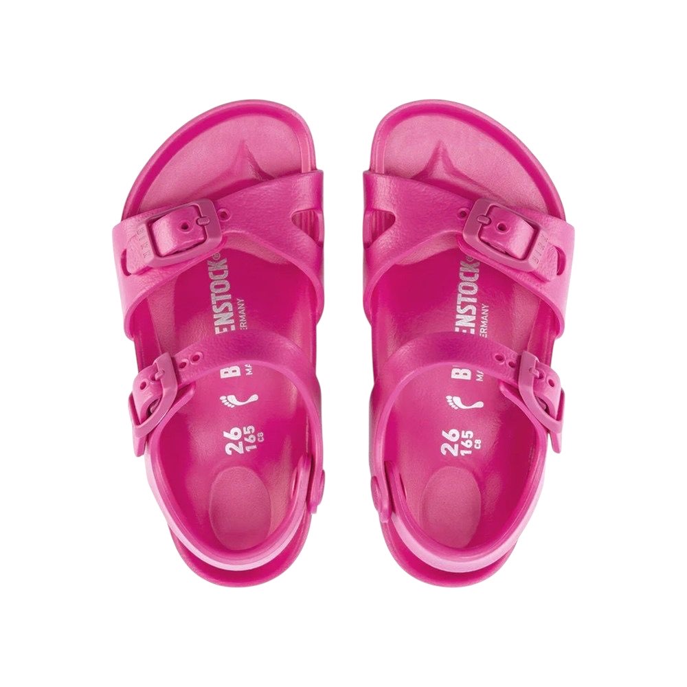 Il modello BIRKENSTOCK Rio è un classico delle scarpe per bambini. La creazione del sandalo risale agli anni Settanta e da allora ha accompagnato generazioni di bambini in modo confortevole durante l'estate. BIRKENSTOCK ha reinterpretato il sandalo Rio in diversi colori neon, utilizzando plastica di qualità superiore. Questo modello che, una volta indossato, ricorda la leggerezza dei sandali di sughero, è in materiale plastico EVA particolarmente leggero e molto flessibile. Plantare BIRKENSTOCK dalla forma anatomica in EVA Tomaia, sottopiede, suola: EVA creata da un pezzo unico Dettagli: sandalo creato completamente da un pezzo unico, fibbia di plastica, articolo impermeabile, lavabile, ammortizzante, ultraleggero “Made in Germany”