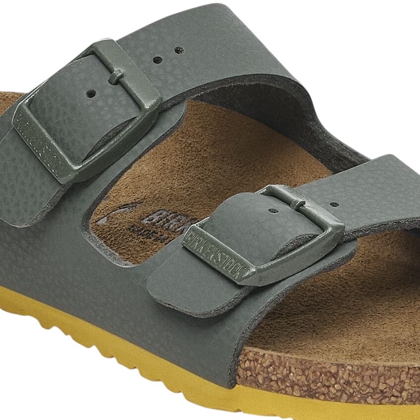 Il sandalo BIRKENSTOCK Arizona, il modello classico per eccellenza, viene proposto ora in chiave nuova e moderna per i bambini amanti dell’avventura. La tomaia è in Birko-Flor®, materiale dermoaffine e resistente, e sfoggia un raffinato look pelle Nabuk. La parte superiore, aperta e adattabile al piede grazie a due fibbie di metallo fisse regolabili individualmente, conferisce ai piedini protezione e appoggio anche durante le attività più scatenate. Tomaia: Birko-Flor® Sottopiede: pelle scamosciata Suola: EVA Dettagli: Due cinturini, due fibbie di metallo regolabili individualmente “Made in Germany”