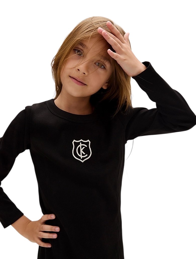 • cotone elasticizzato • struttura a costine • vestibilità slim • scollo rotondo • maniche lunghe • tiretto • logo con stemma Calvin Klein ricamato al centro del petto