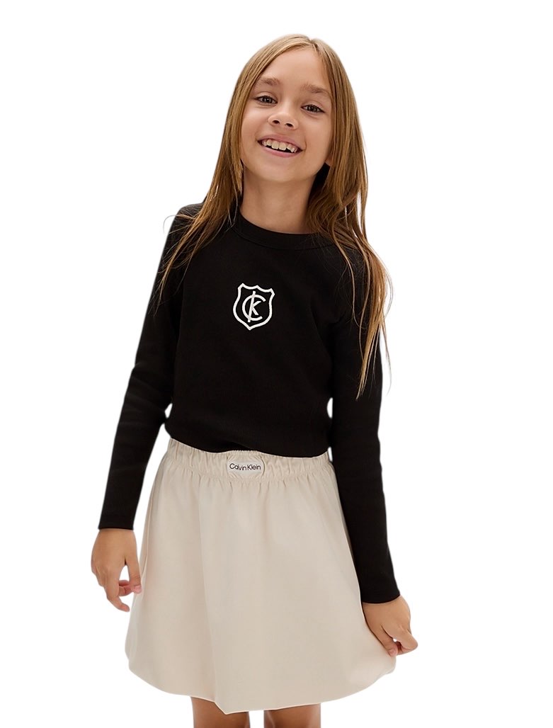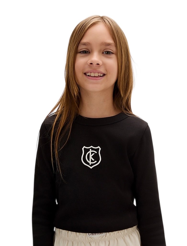• cotone elasticizzato • struttura a costine • taglio regolare • girocollo • maniche lunghe • logo con stemma Calvin Klein ricamato al centro del petto