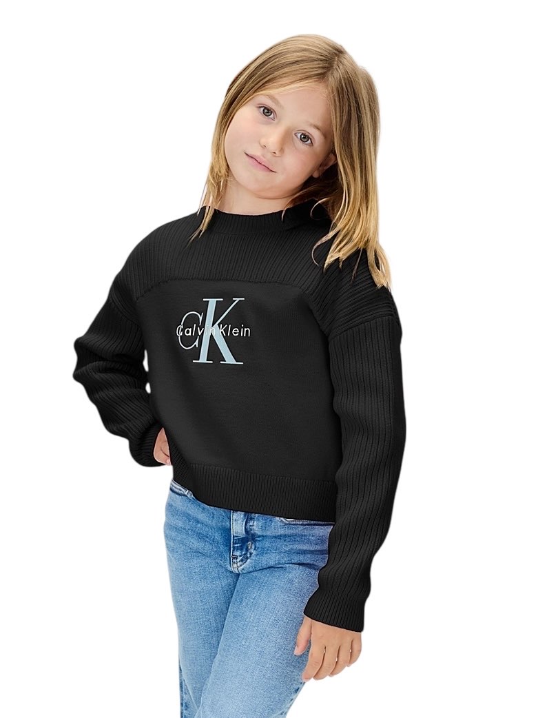 • cotone pettinato compatto • texture a costine a contrasto su spalle e maniche • girocollo • scollo, polsini e bordo a costine • logo Calvin Klein sul davanti