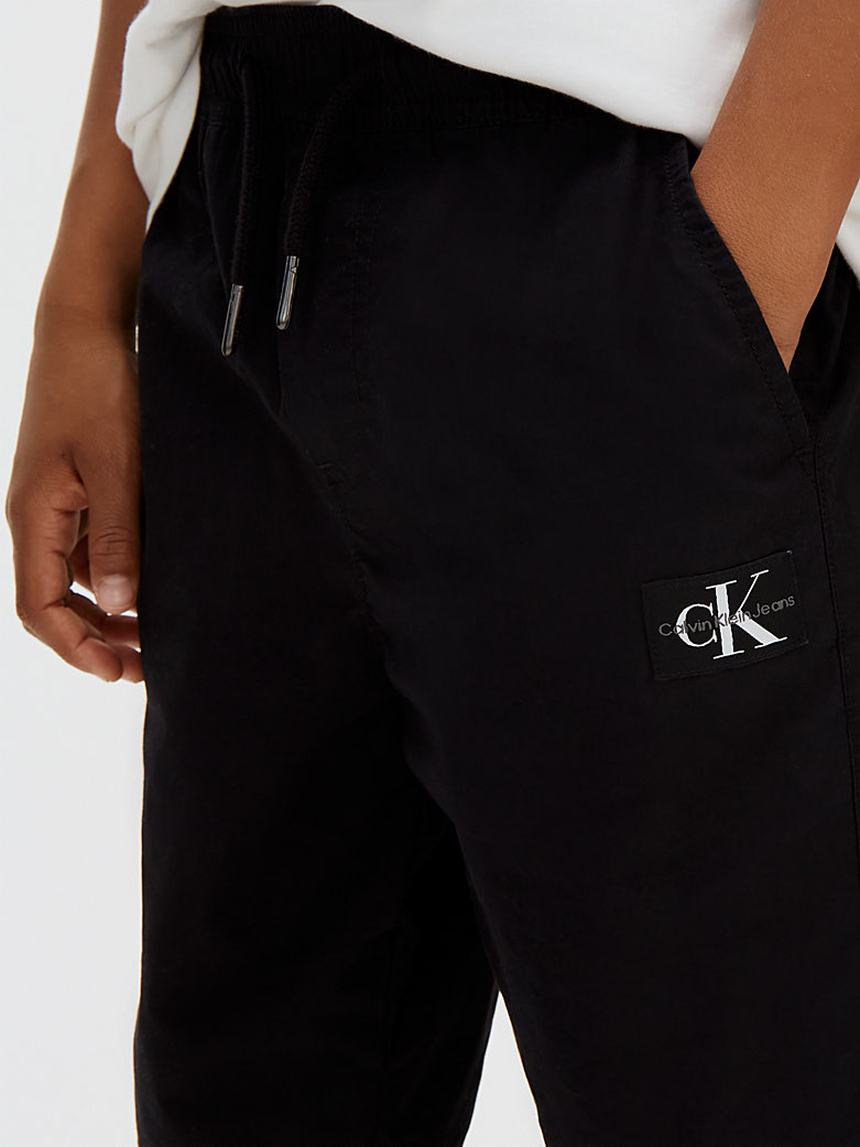• tela paracadute • vita elastica con coulisse • finta patta • tasche laterali • stemma Calvin Klein su una gamba