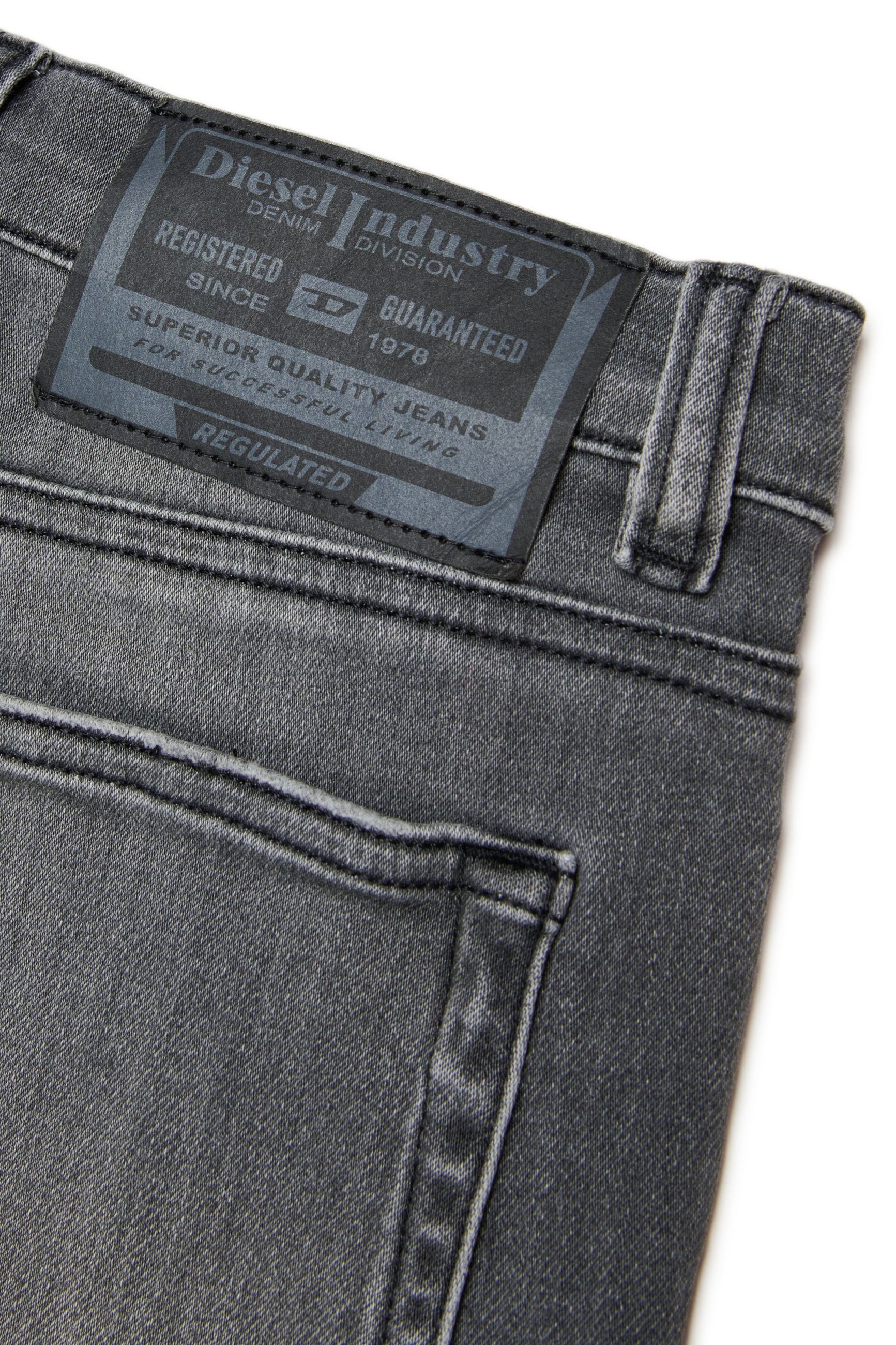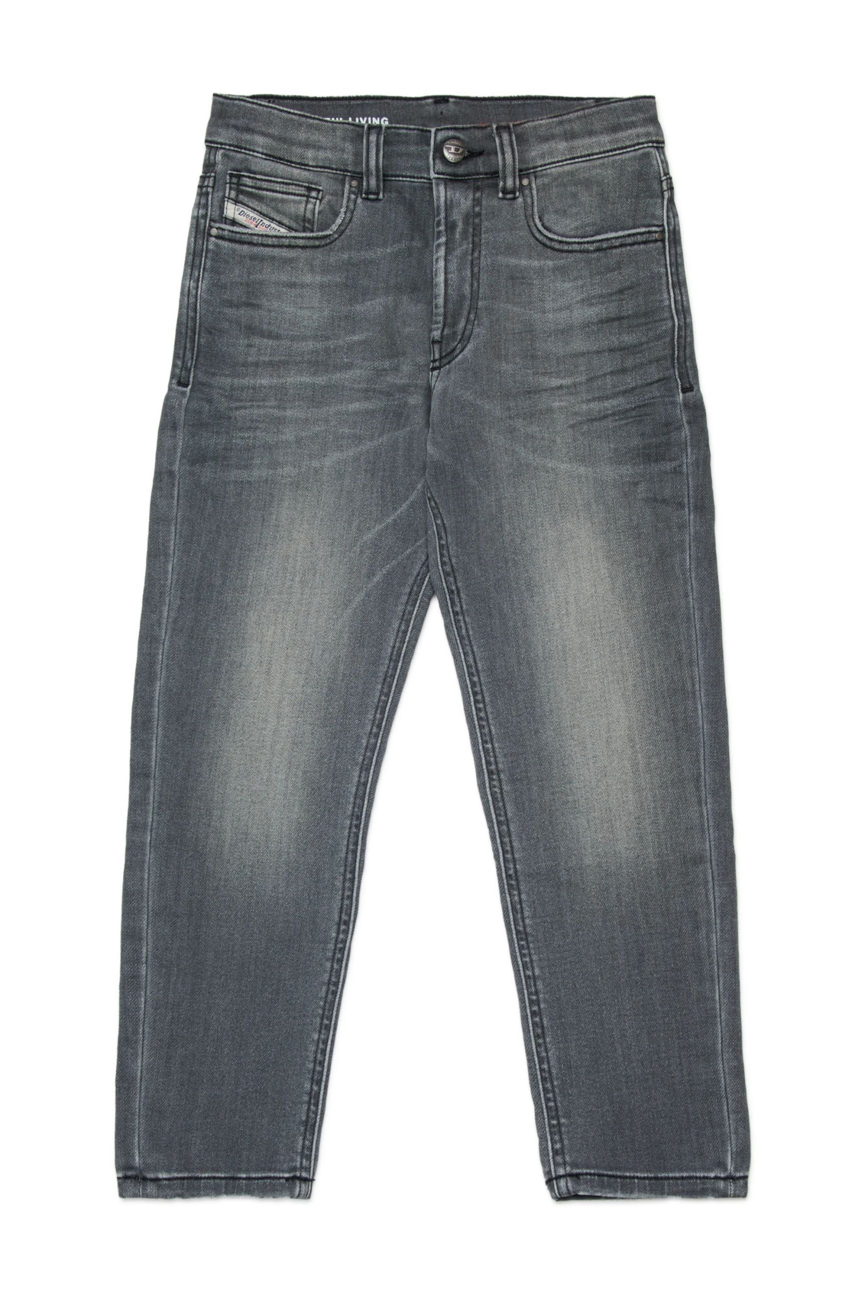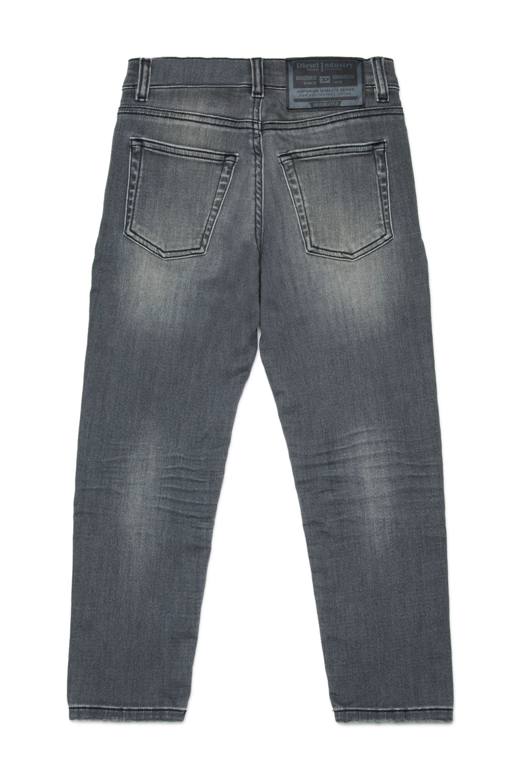 Questi jeans da ragazzo sono realizzati con una vestibilità regular-loose. Realizzati in JoggJeans per garantire comfort, presentano un lavaggio grigio con dettagli trattati che creano un effetto sfumato sulle gambe. Completati da una patch logo Diesel tono su tono sulla vita posteriore.