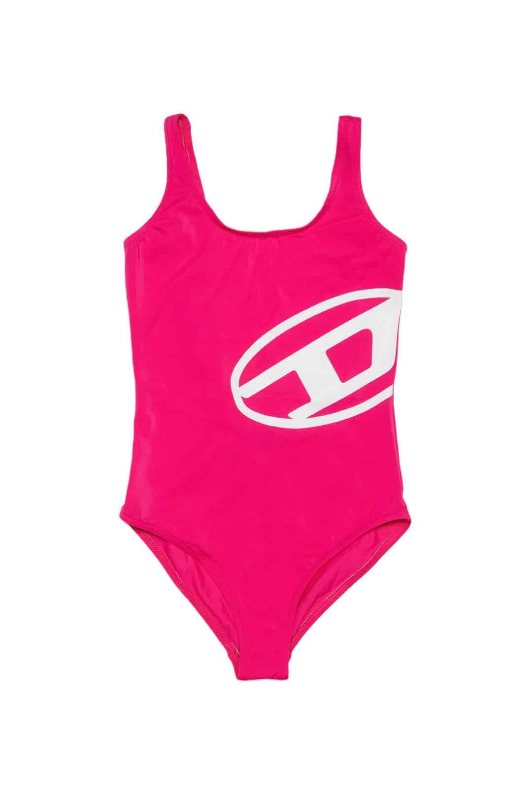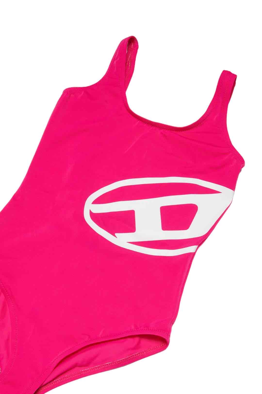 Costume intero in lycra con schiena scoperta. Presenta sul davanti l'iconico logo oval D a contrasto colore. Questo capo fa parte della linea Diesel Beachwear, una collezione cool pensata per l'estate.