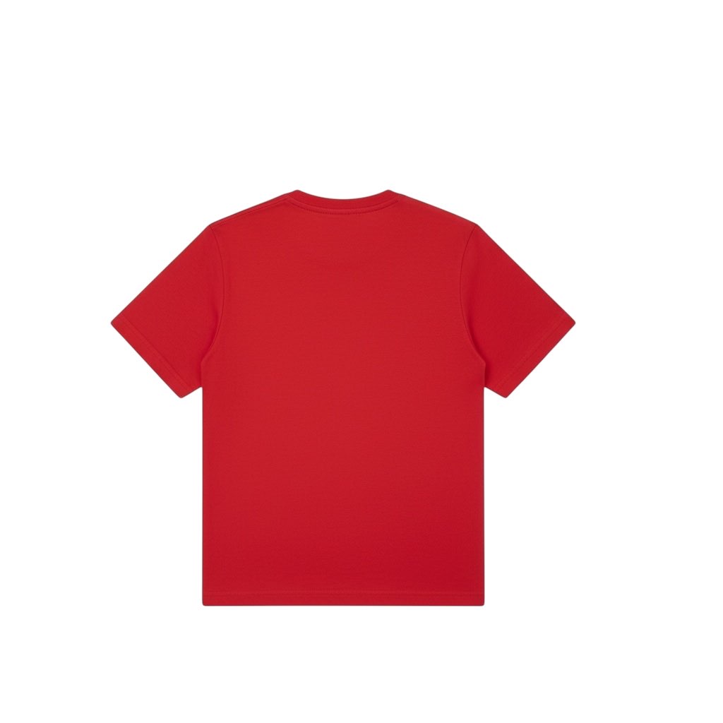 T-shirt da bambino con collo rotondo e maniche corte. Realizzata in puro cotone per una sensazione morbida e fresca sulla pelle. La stampa grafica sul petto con logo aggiunge un tocco di autenticità.