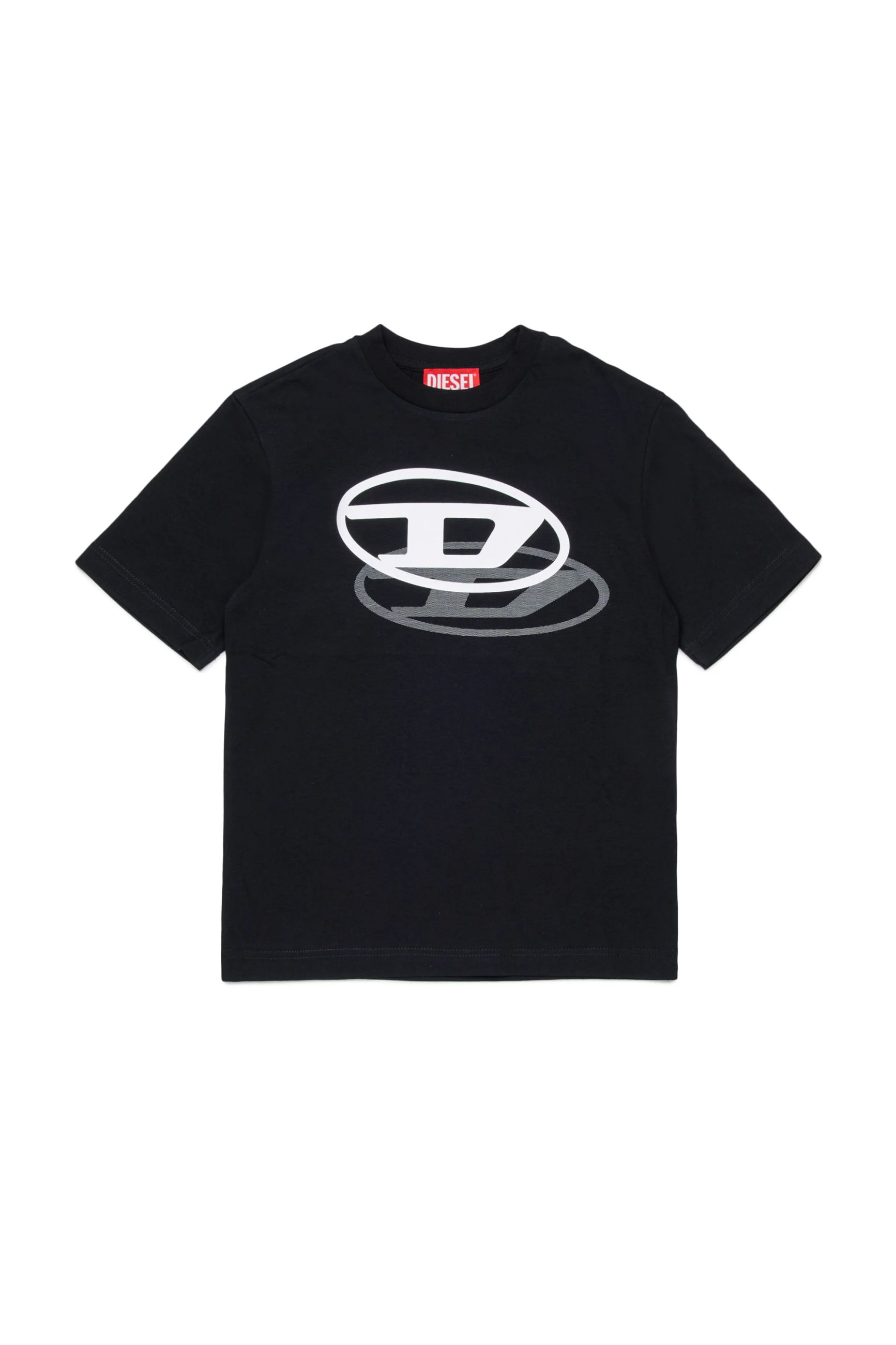 T-shirt per bambini con classico girocollo e maniche corte, realizzata in tessuto di cotone per una sensazione leggera e confortevole. Il design presenta una stampa Oval D sul davanti con effetto ombra a contrasto.