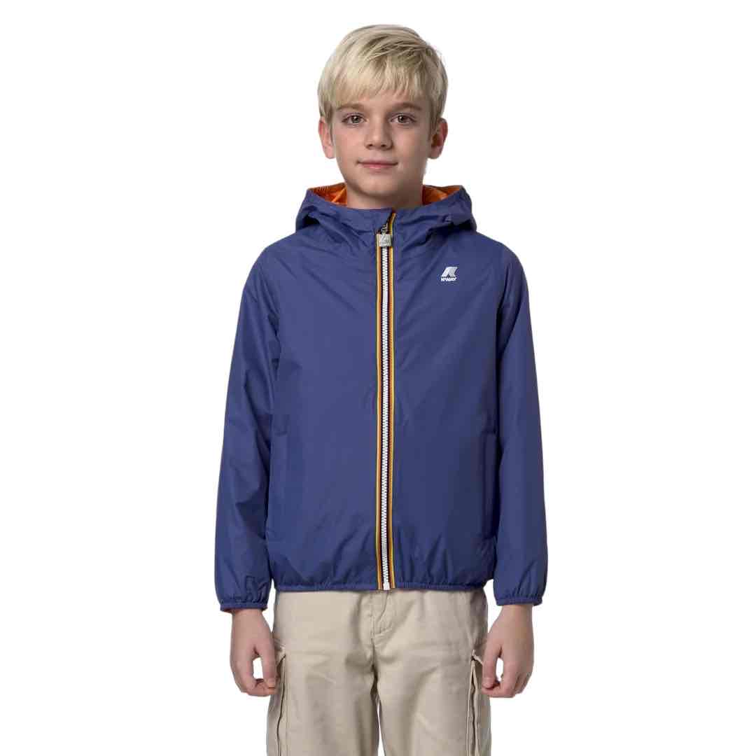 Jake è una giacca corta da bambino dal design impacchettabile e reversibile, con un lato in nylon spalmato e un lato in nylon liscio dal colore a contrasto. Il modello è progettato con la massima cura dei dettagli: le cuciture sono termonastrate, mentre i bordi sono rifiniti con inserti elastici per offrire aderenza e una vestibilità comoda e veloce.