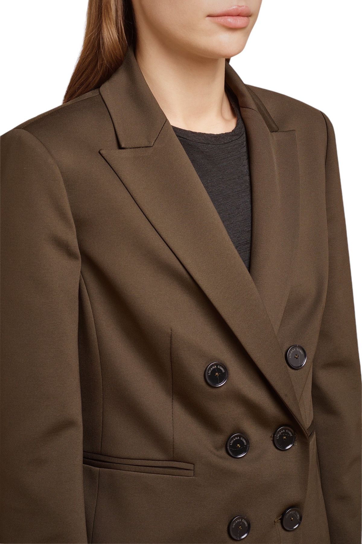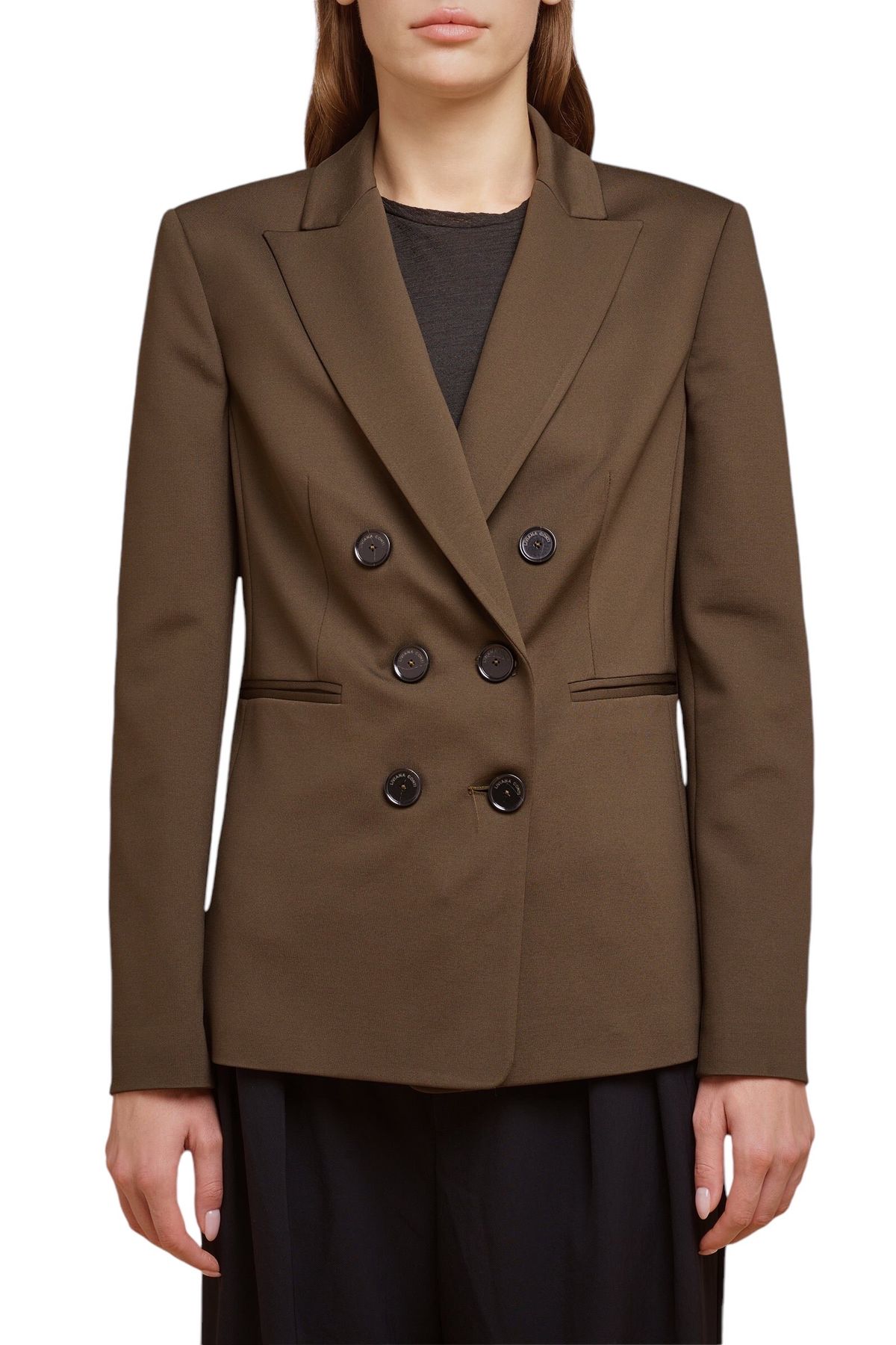 Blazer doppiopetto in punto Milano,foderata, scollo con rever, pinces in vita, tasche doppio filetto, spacco sormontato al centro dietro, manica lunga con spacco al fondo chiuso con asola e bottone. 68% VISCOSA 27% POLIAMMIDE 5% ELASTAN 100% POLIESTERE 67% ACETATO 33% POLIESTERE Made in ITALY Vestibilità Aderente
