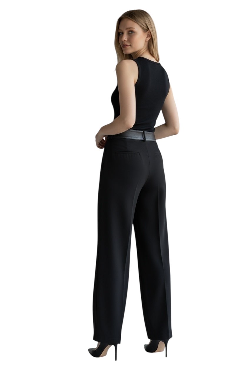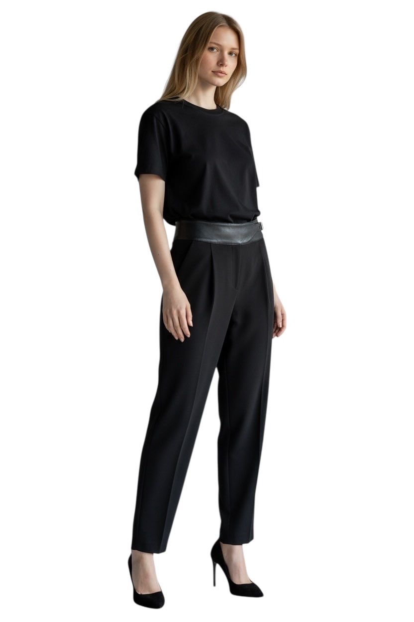 PANTALONI PALAZZO IN PANNO DI CASHMERE LEGGERO NERO. VITA ALTA CON INSERTO IN PELLE LISCIA TONO SU TONO. GAMBA AMPIA, CHIUSURA CON ZIP E GANCETTO NASCOSTI. LUNGHEZZA EXTRA-LUNGA. 70% KASHMIR 30% POLIAMMIDE 67% ACETATO 33% POLIESTERE 50% POLIURETANICA 50% VISCOSA Made in ITALY Vestibilità regular