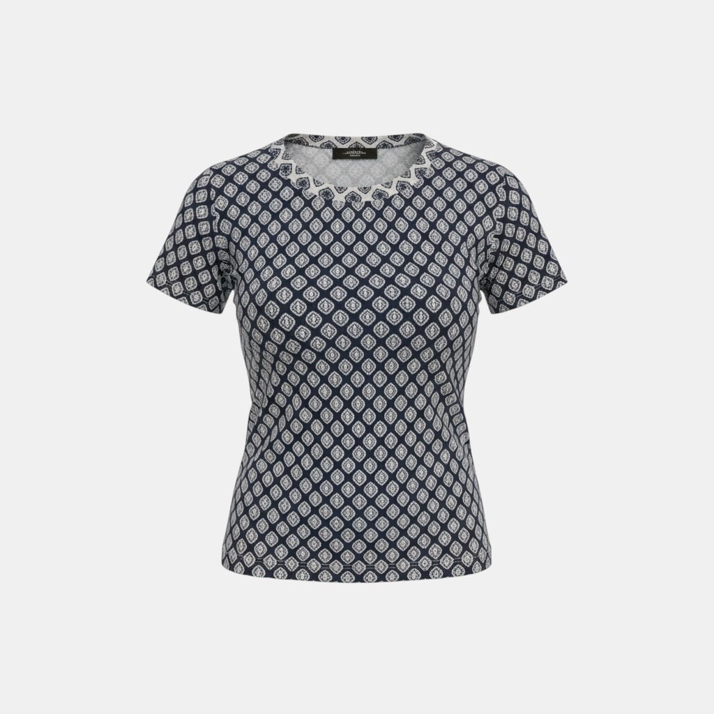 T-shirt basic personalizzata con stampa d'archivio E. Marinella e dettagli esclusivi di collezione. T-shirt in jersey tecnico Linea boxy Girocollo Maniche corte a giro basso Spacchetti laterali squadrati Fondo leggermente più lungo sul retro