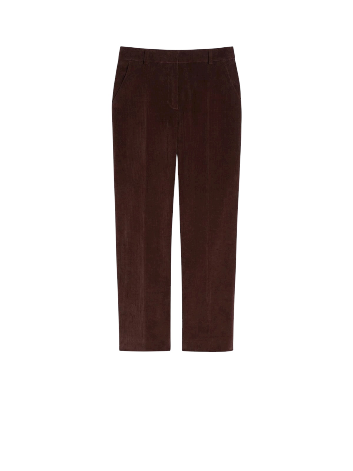 Pantaloni realizzati in velluto 2.000 righe, presentano motivo a coste dalla linea leggermente svasata al fondo. Possiedono inoltre piega stirata al centro, tasche laterali e tasche a filetto sul retro. Dettaglio chiusura con zip e gancio.