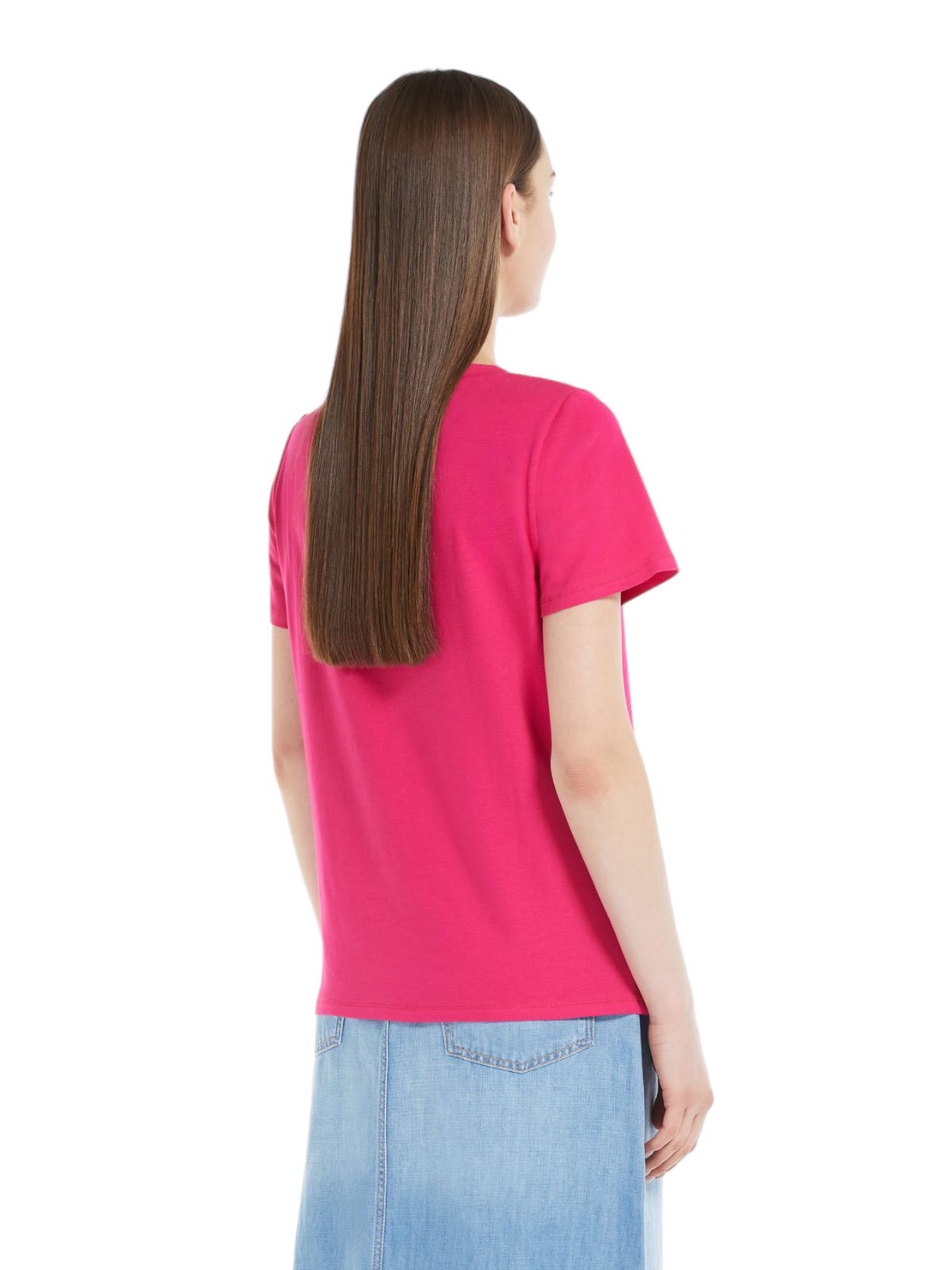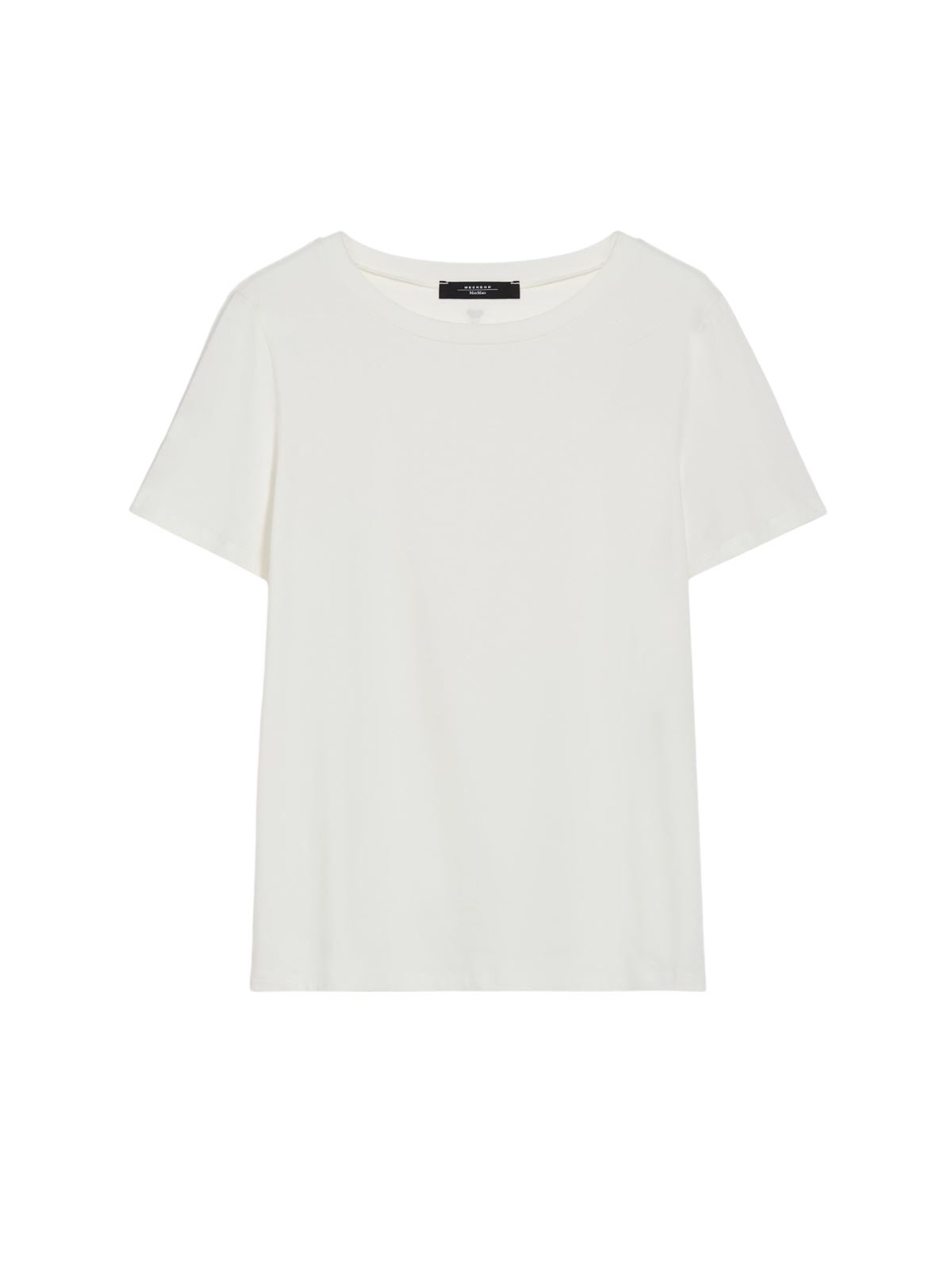 T-shirt girocollo dalla linea dritta realizzata in morbido jersey di cotone stretch organico, con maniche corte a giro. Modello dallo stile essenziale, rifinito con piccolo logo a farfalla sul retro del coll