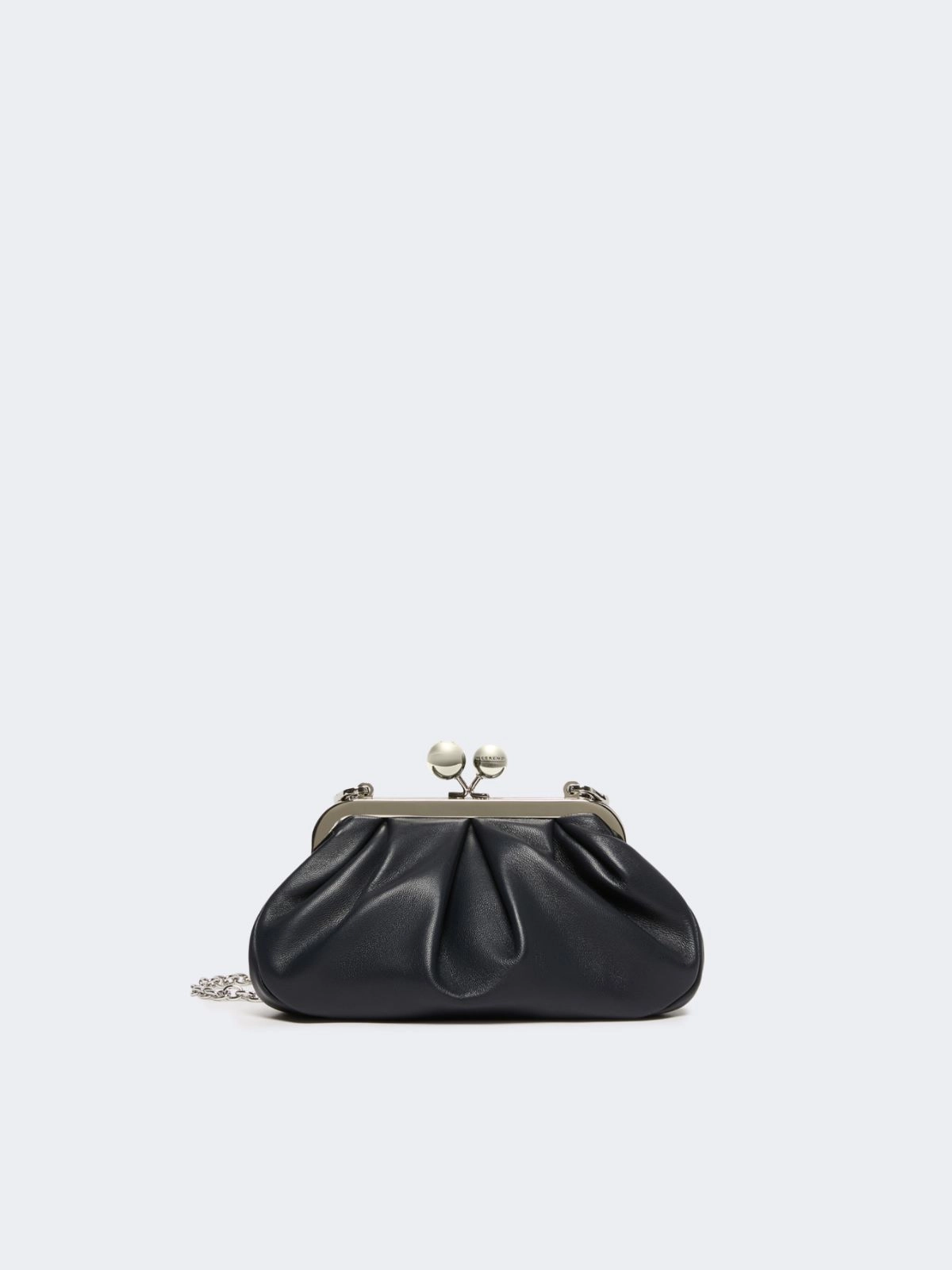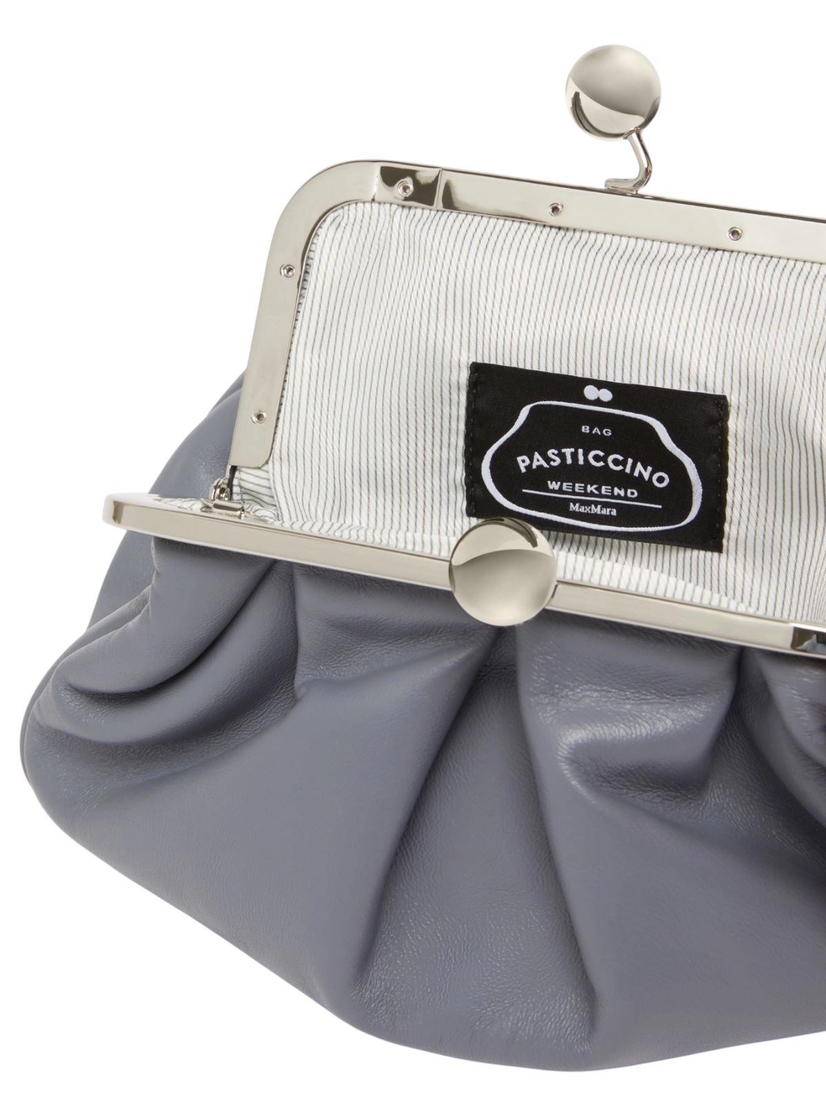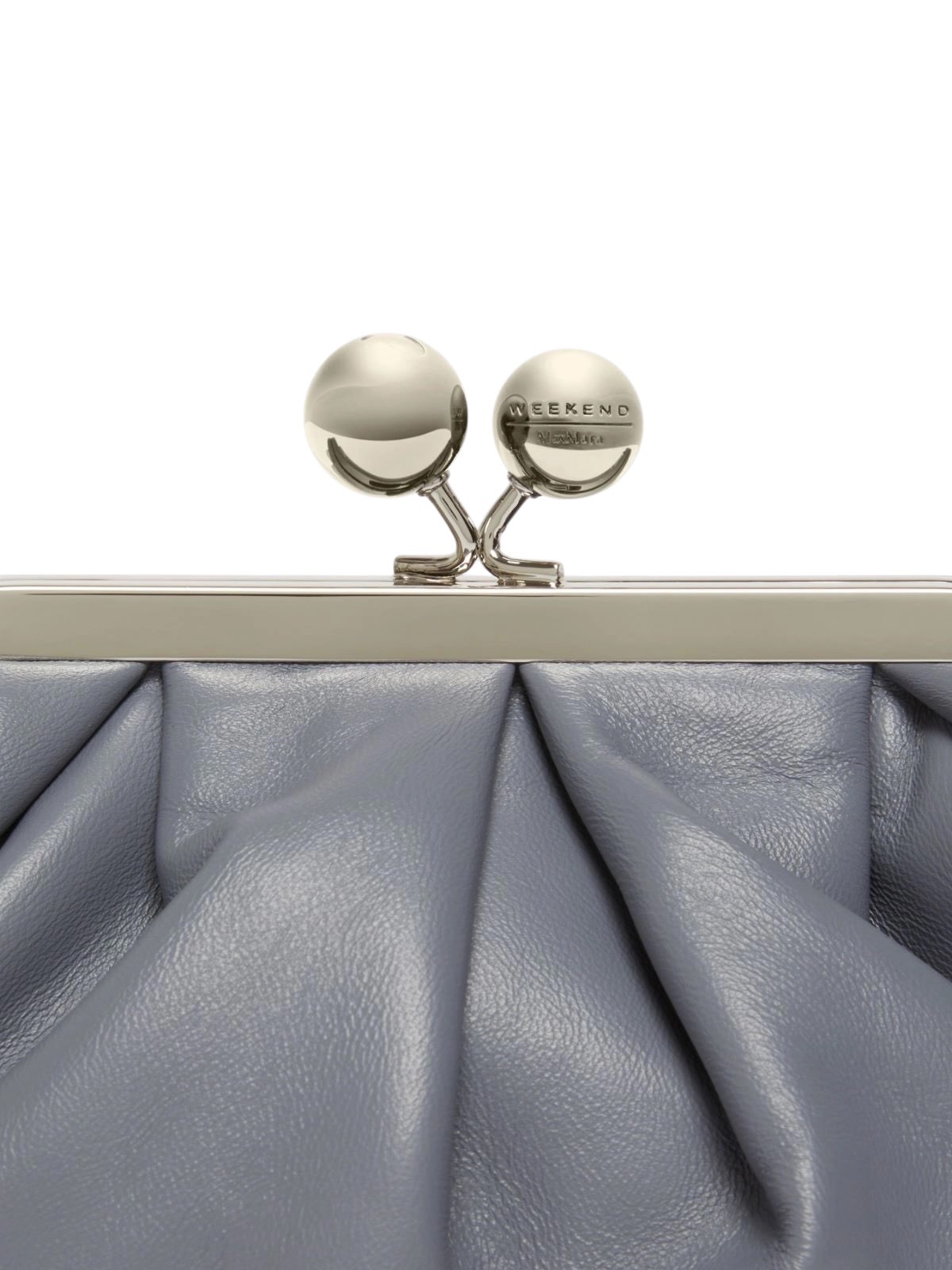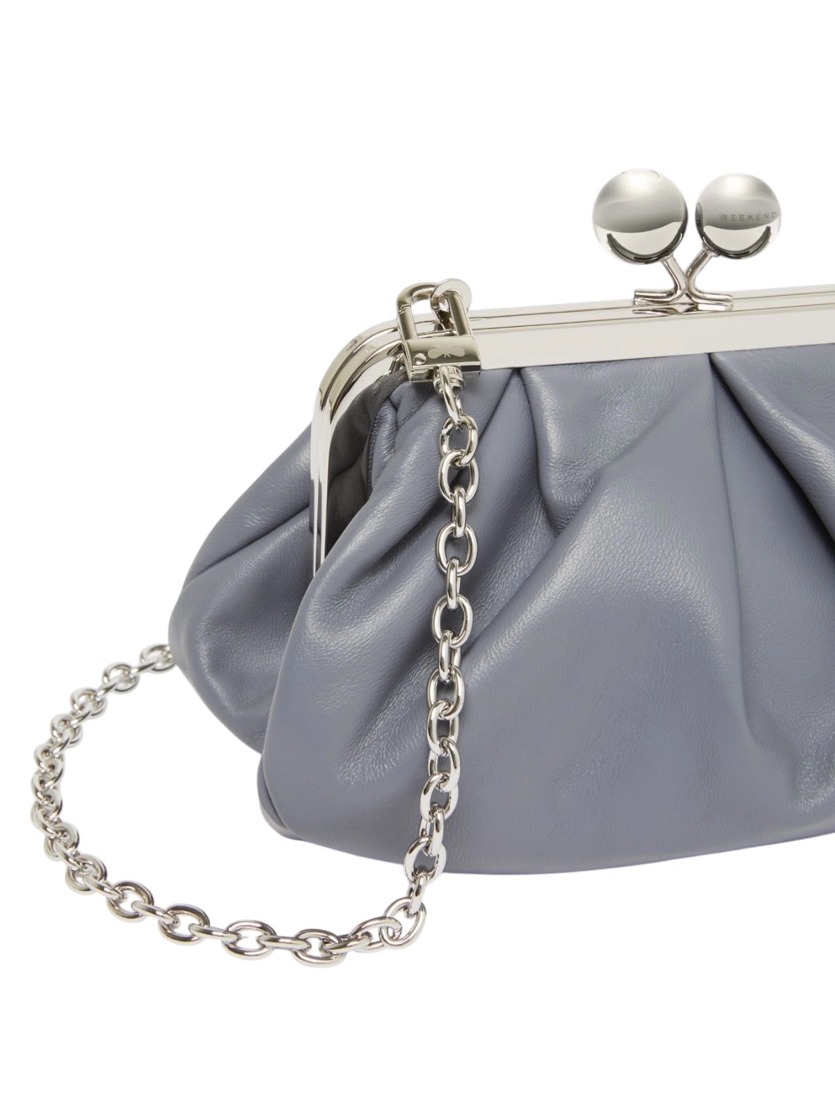 Borsa in morbido montone nappato leggero Fodera a righe con label personalizzata Tracolla rimovibile a catena con spallaccio in pelle Chiusura metallica con sfere personalizzate Weekend Max Mara Dimensioni: 19 x 10 x 15 cm Taglia e vestibilità Guida alle taglie Composizione e lavaggio Borsa in montone; fodera in 100%poliestere.