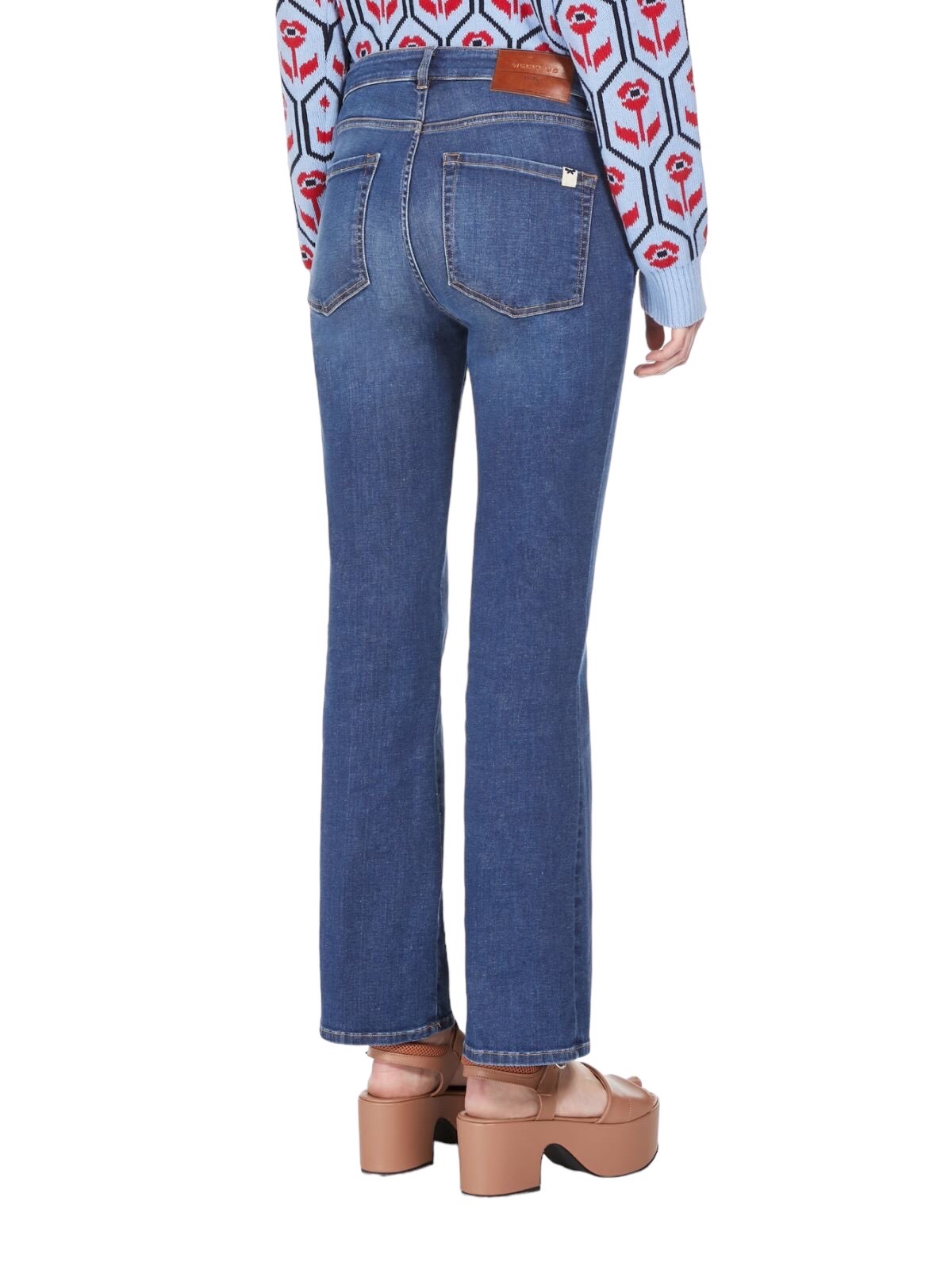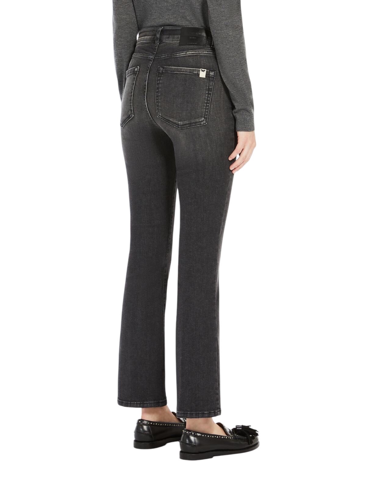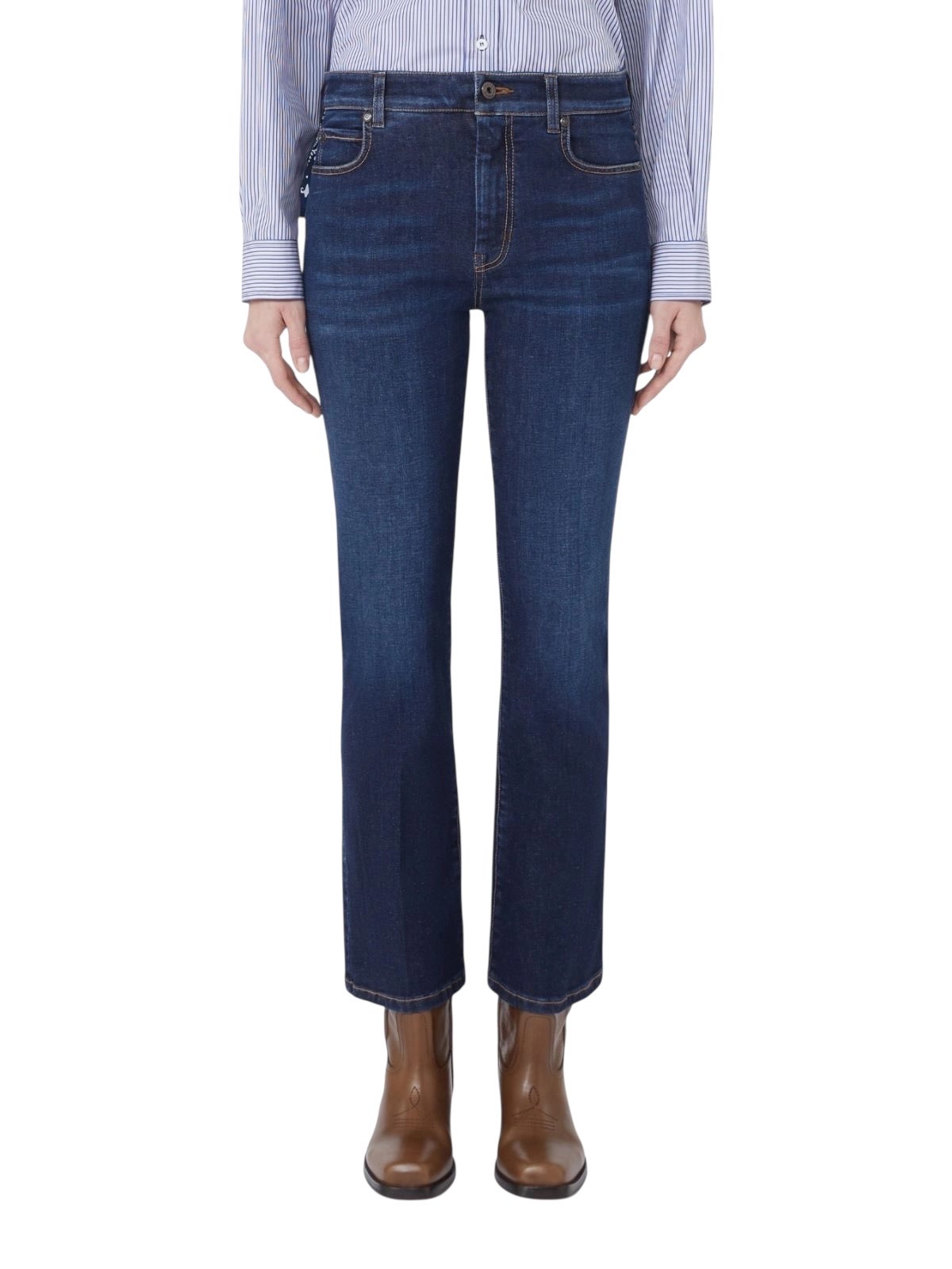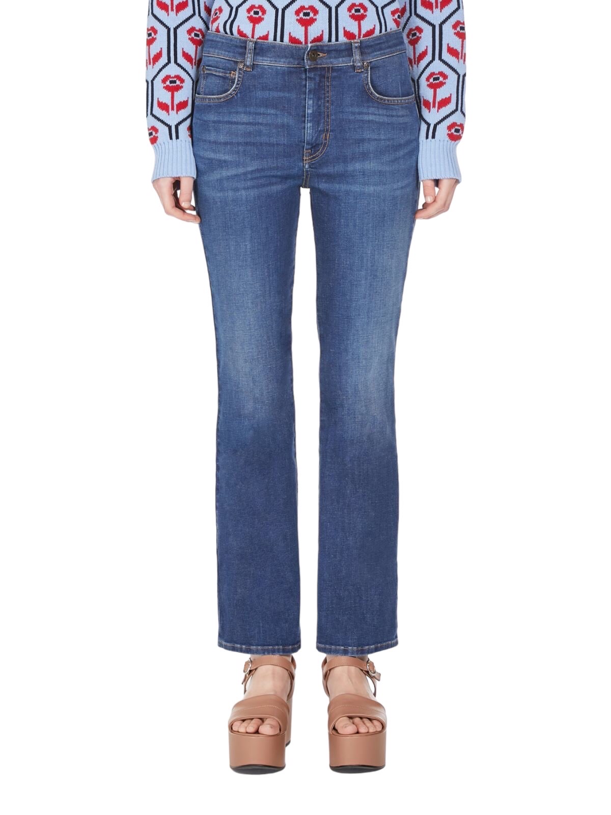 Jeans 5 tasche in denim super comfort di cotone, caratterizzato da una silhouette ultra slim con gamba leggermente svasata al fondo e taglio cropped alla caviglia. Rifinito con dettagli iconici, rivetti in metallo e piccolo logo a farfalla sulla tasca posteriore destra. Chiusura frontale con zip coperta e bottone a chiodo. Questo capo è stato realizzato con prodotti e tecniche innovativi a basso impatto ambientale. Il tessuto di questo capo è trattato utilizzando processi eco-sostenibili, senza l'utilizzo di pietra pomice, e sostituendo il tradizionale lavaggio a immersione con la tecnologia Nano Bubble, riducendo il consumo di risorse idriche. Tutti i prodotti utilizzati rispettano le direttive ambientali.