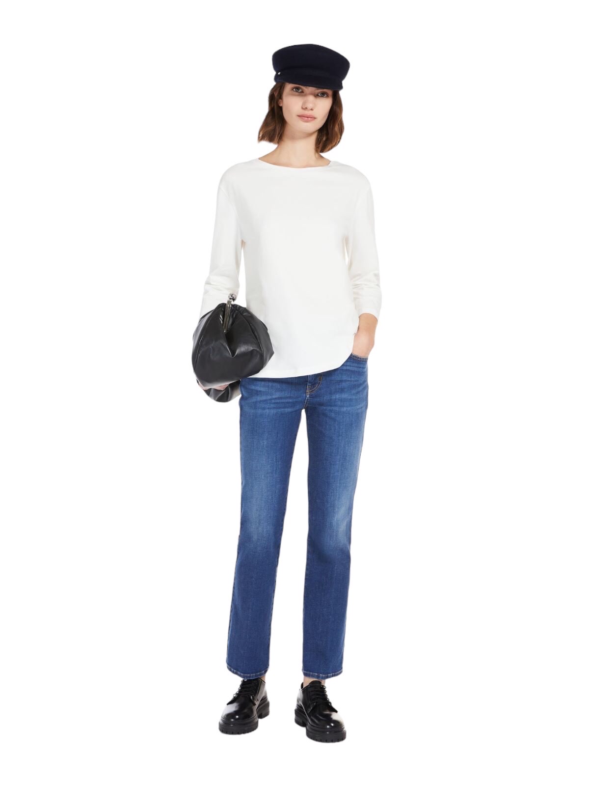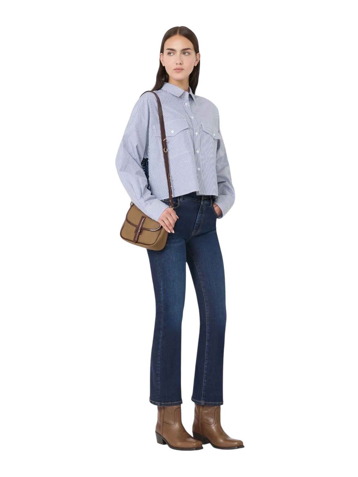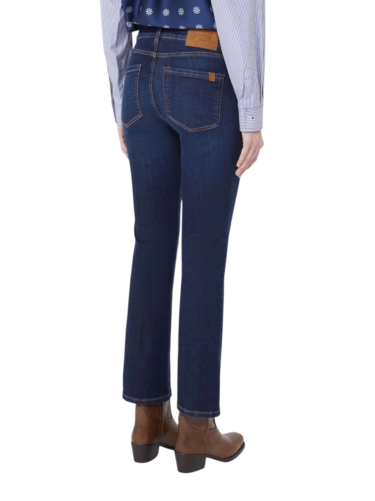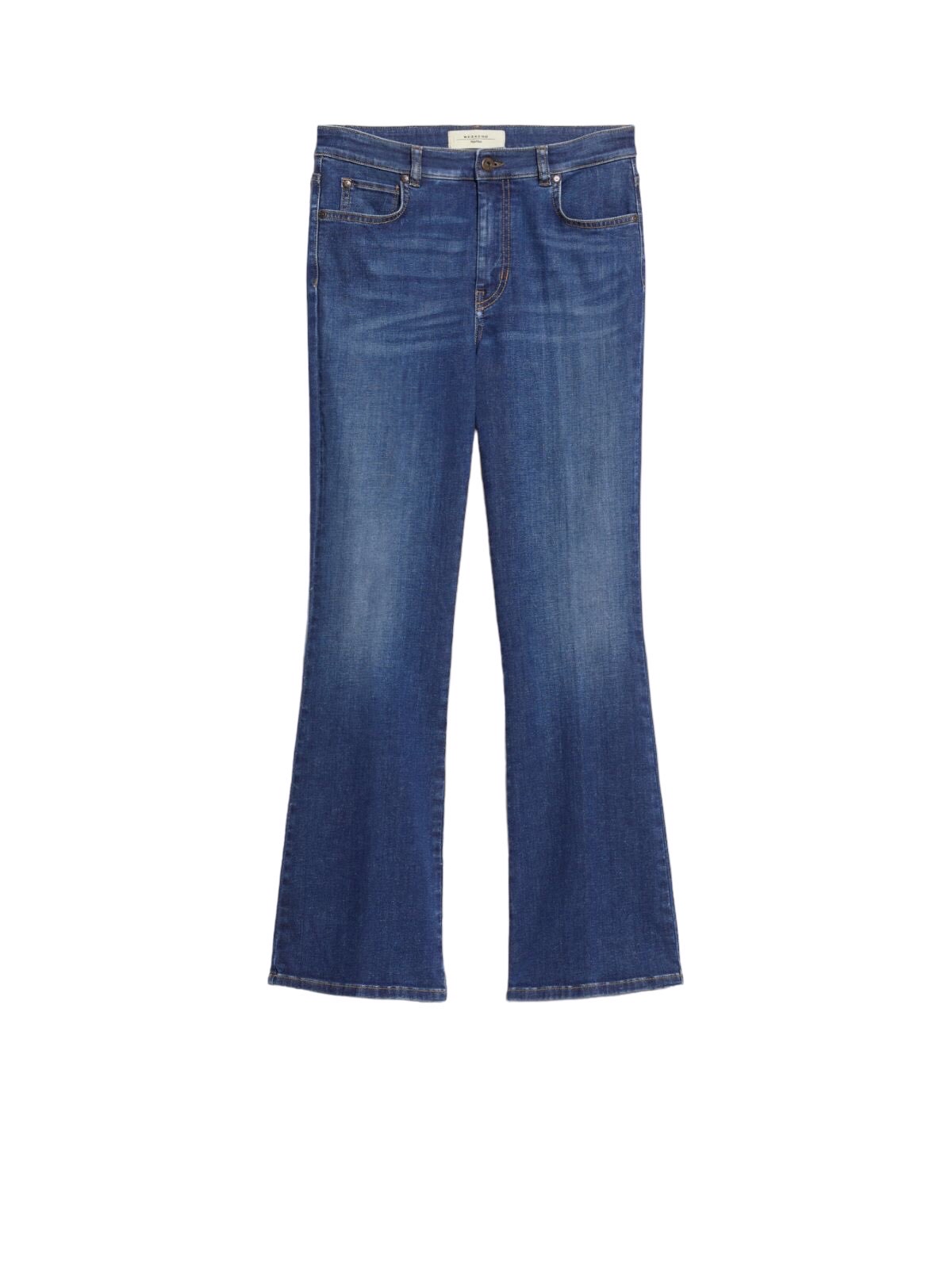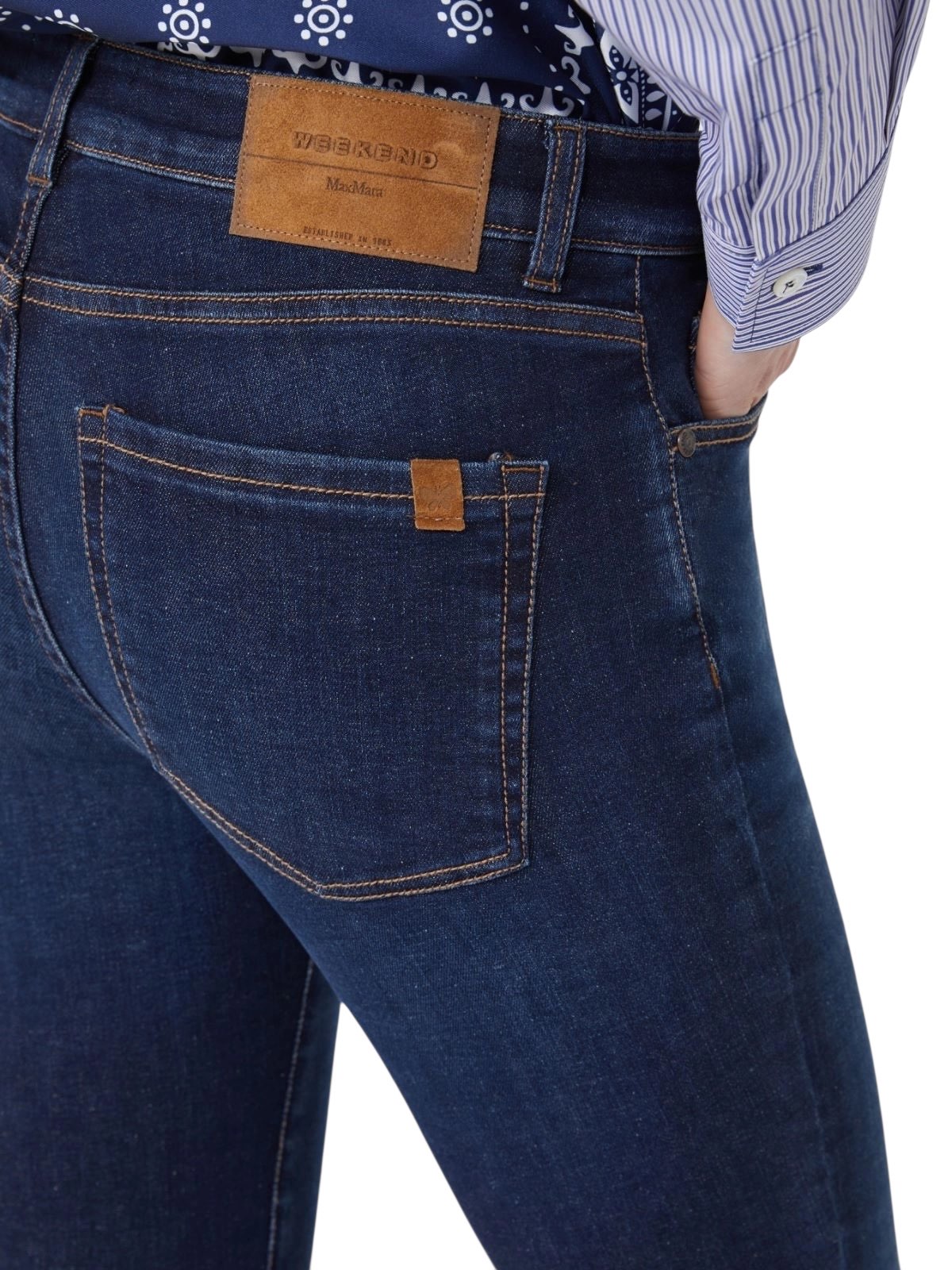 Jeans 5 tasche in denim super comfort di cotone, caratterizzato da una silhouette ultra slim con gamba leggermente svasata al fondo e taglio cropped alla caviglia. Rifinito con dettagli iconici, rivetti in metallo e piccolo logo a farfalla sulla tasca posteriore destra. Chiusura frontale con zip coperta e bottone a chiodo. Questo capo è stato realizzato con prodotti e tecniche innovativi a basso impatto ambientale. Il tessuto di questo capo è trattato utilizzando processi eco-sostenibili, senza l'utilizzo di pietra pomice, e sostituendo il tradizionale lavaggio a immersione con la tecnologia Nano Bubble, riducendo il consumo di risorse idriche. Tutti i prodotti utilizzati rispettano le direttive ambientali.