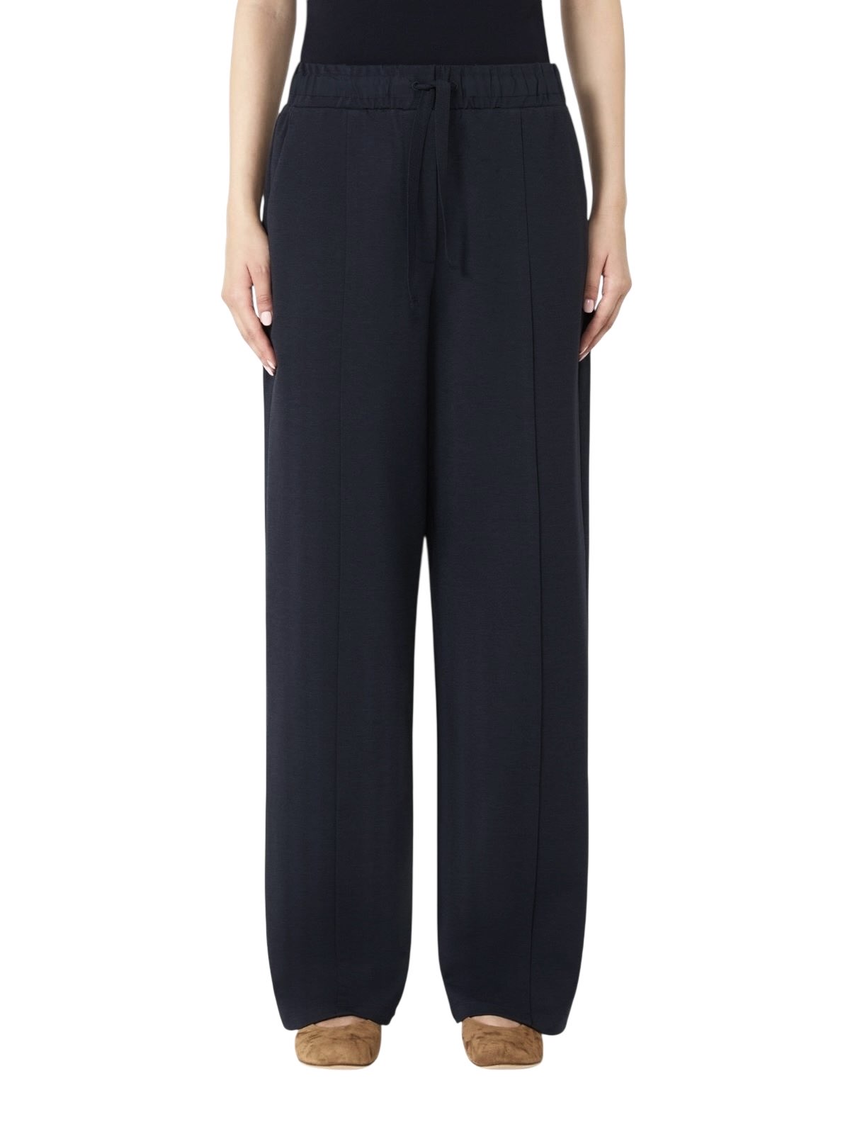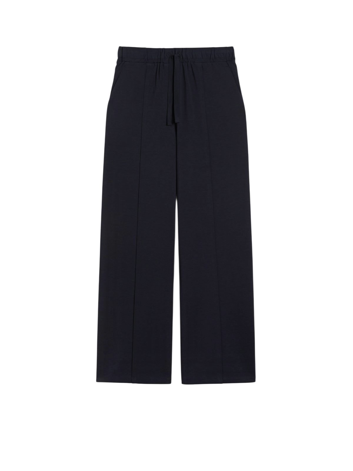 Pantalone in jersey di cotone e lyocell a punto Milano Linea ampia Vita elasticizzata in popeline con coulisse Tasche alla francese sui fianchi Piega cucita sul davanti Taglia e vestibilità La modella veste la taglia M ed è alta 178 cm. Le sue misure sono: vita 60 cm e fianchi 89 cm