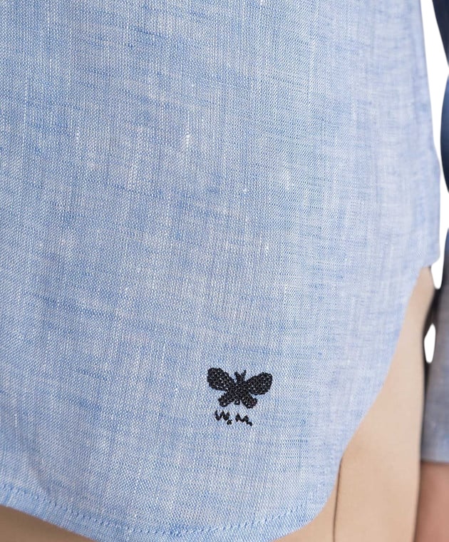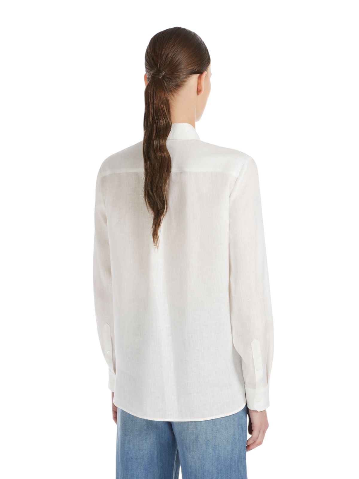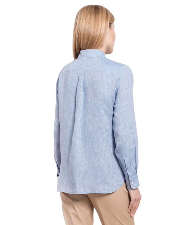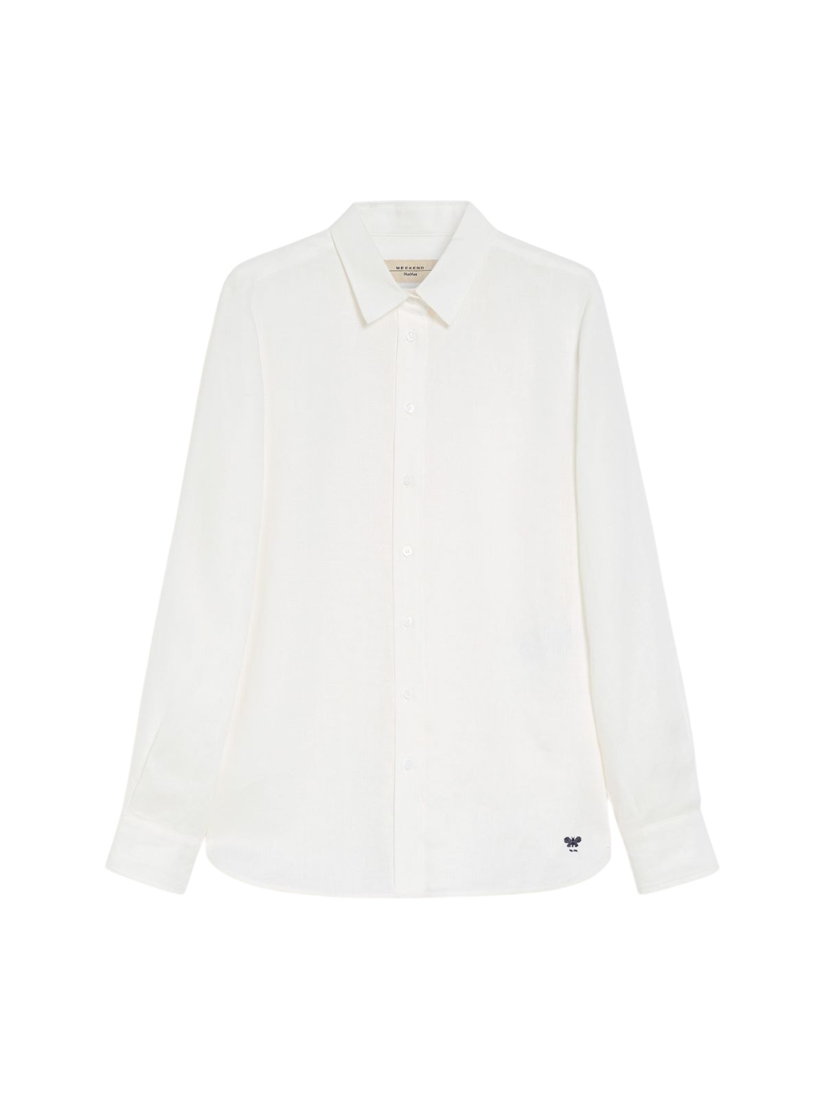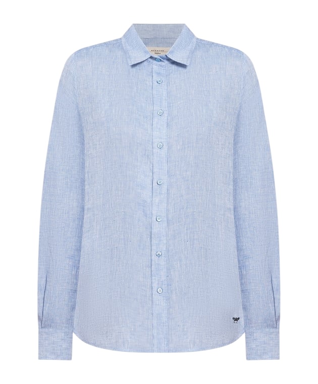 Camicia in puro lino, caratterizzata da una silhouette classica con fondo stondato. Colletto a punta, maniche lunghe con polsini, taglio sprone sul retro e piega centrale sulla schiena. Personalizzata con logo ricamato a fondo capo, lato sinistro indossato. Chiusura con bottoni a vista in tono.