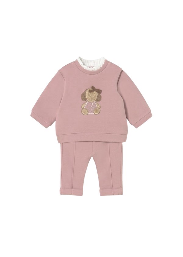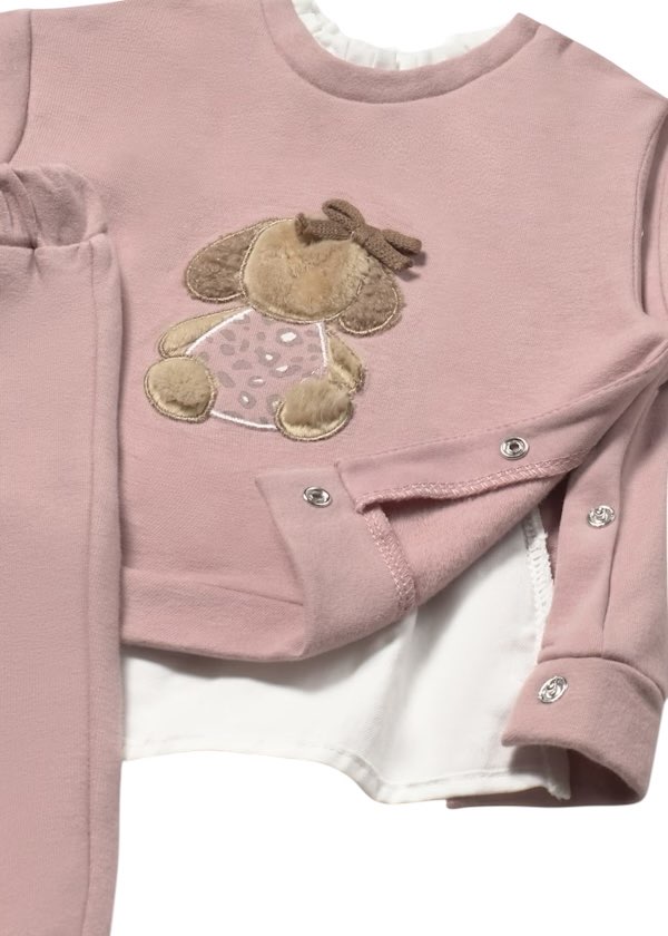 Completo per neonata costituito da felpa e pantalone abbinati.