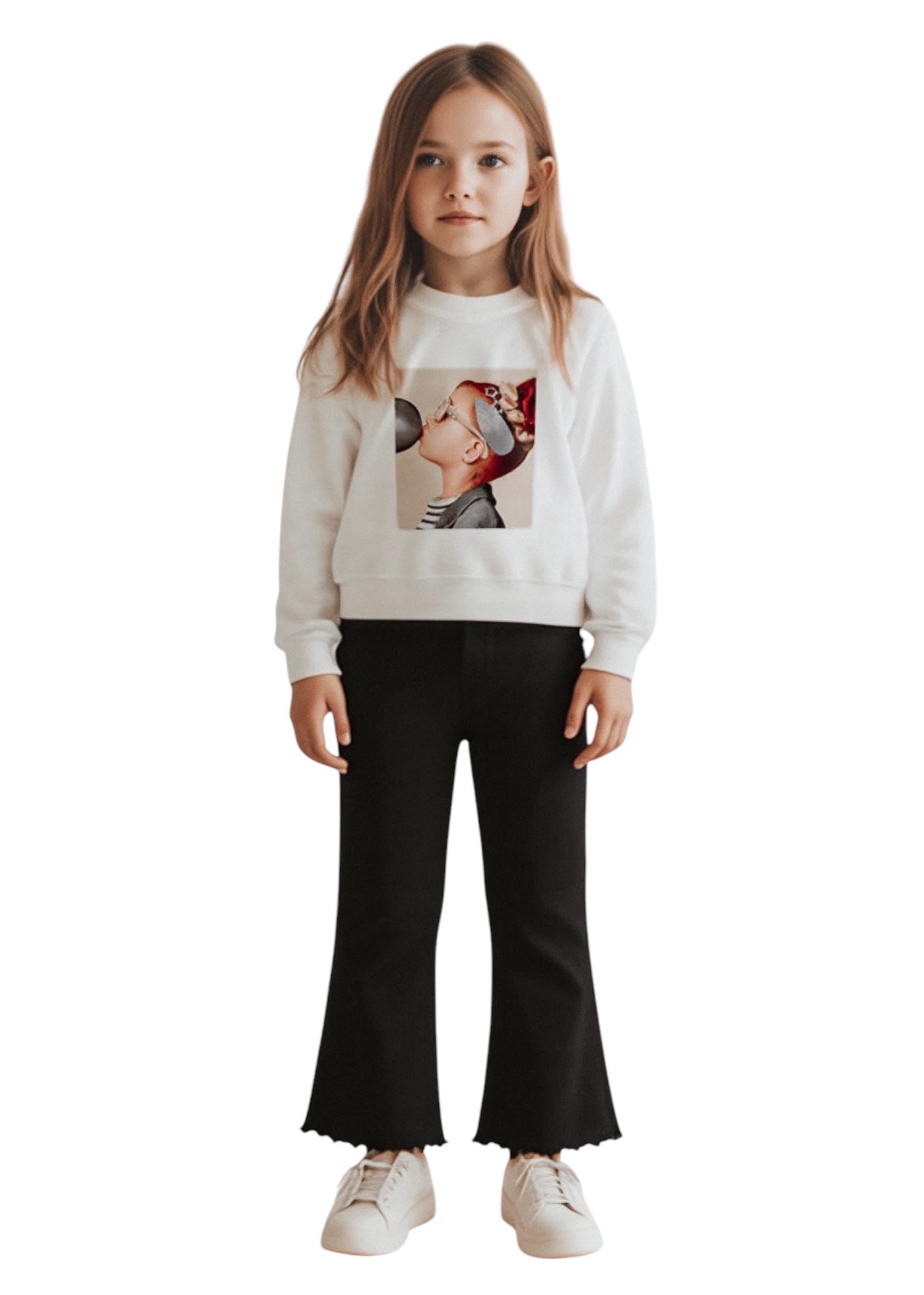 Pantalone modello leggings per bambina, taglio aderente dai fianchi alle ginocchia e a campana verso il basso. Vestibilità normale. Elastico in vita. Scegliendo i nostri prodotti in cotone, supporti il nostro impegno nell'iniziativa Better Cotton. Il cotone Better Cotton è ottenuto attraverso un sistema di bilancio di massa e non può essere fisicamente ricondotto ai prodotti finali. tuttavia, i produttori di cotone beneficiano della domanda di Better Cotton in volumi equivalenti.