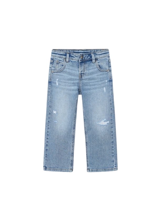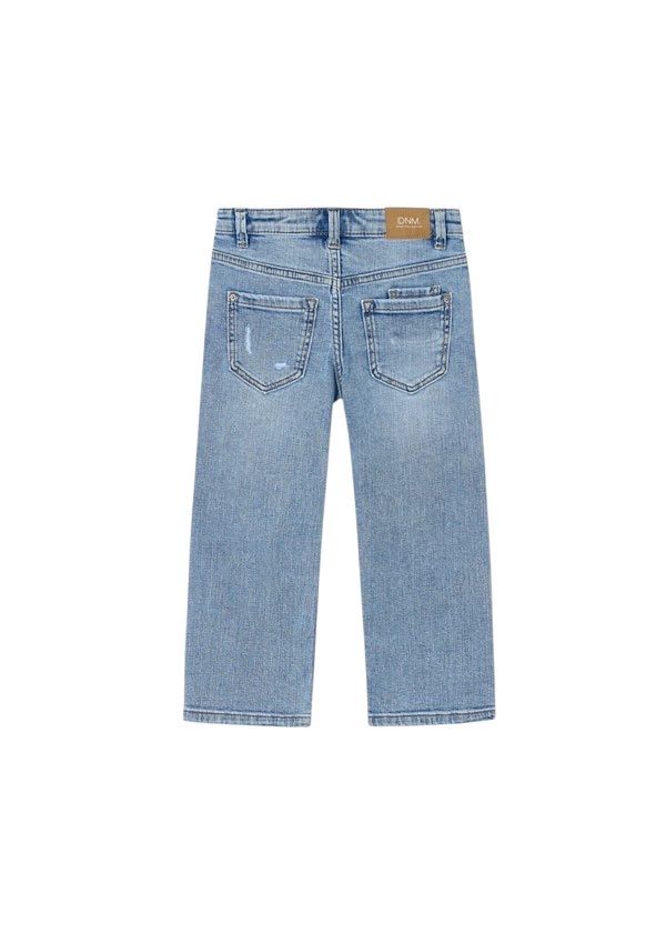 Pantalone per bambino. Chiusura con cerniera e bottone. Elastico regolabile in vita che garantisce un migliore vestibilità. Tessuto in jeans comodo e abbinabile per look di tutti i giorni. Per motivi di sicurezza, nelle taglie piccole (2-5 anni) la cerniera è sostituita da una finta patta.