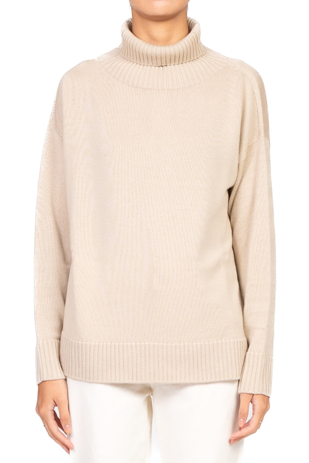 Maglia a collo alto realizzata in pura lana vergine, calda, traspirante e naturalmente isolante. Il modello presenta una linea pulita con bordi rifiniti a costine su collo, polsi e fondo, che garantiscono una vestibilità stabile e un aspetto curato. Il filato naturale dona comfort e morbidezza, rendendo questo capo un alleato ideale per la stagione fredda. Perfetta da indossare da sola o in layering sotto giacche e capispalla.