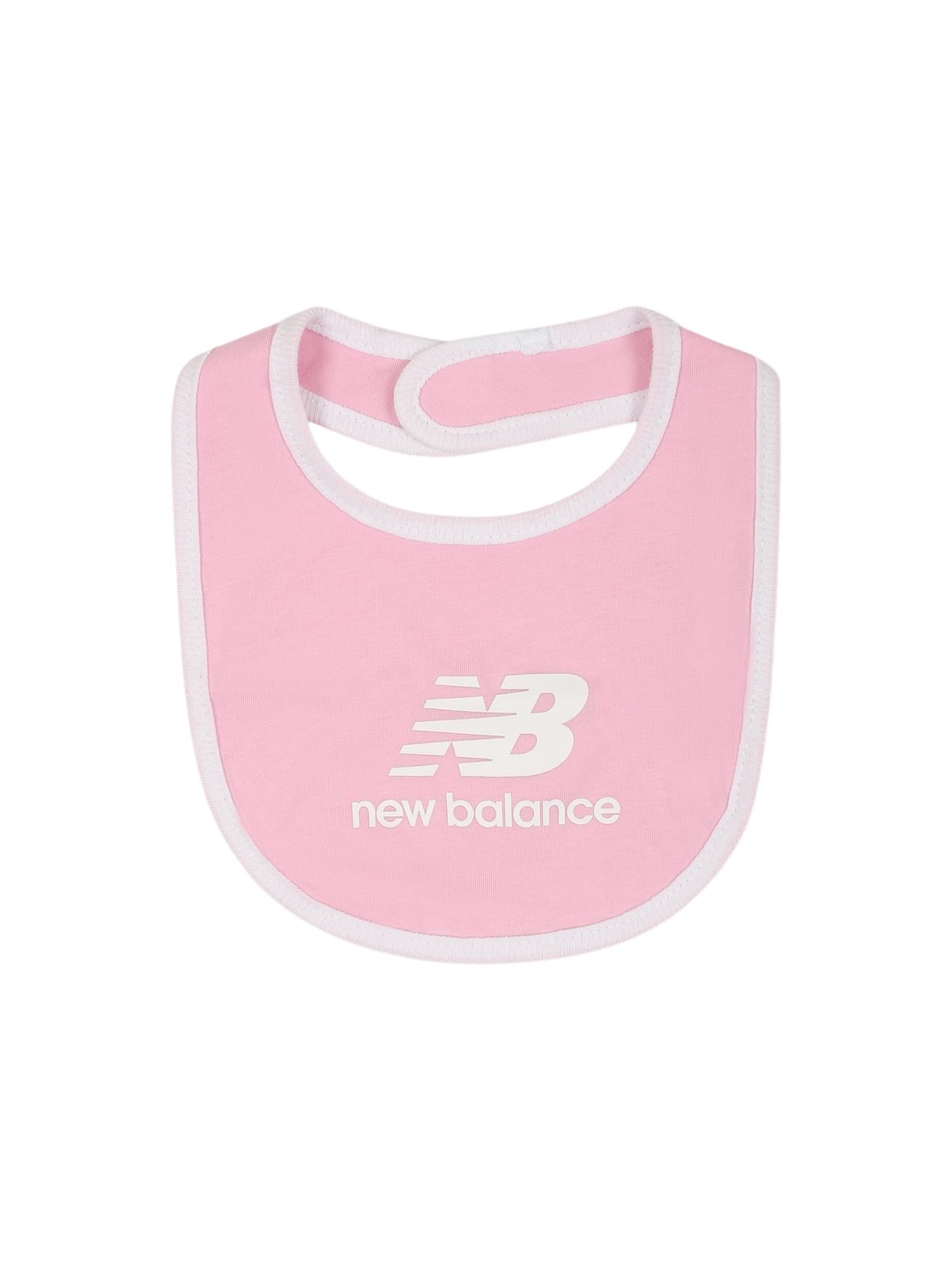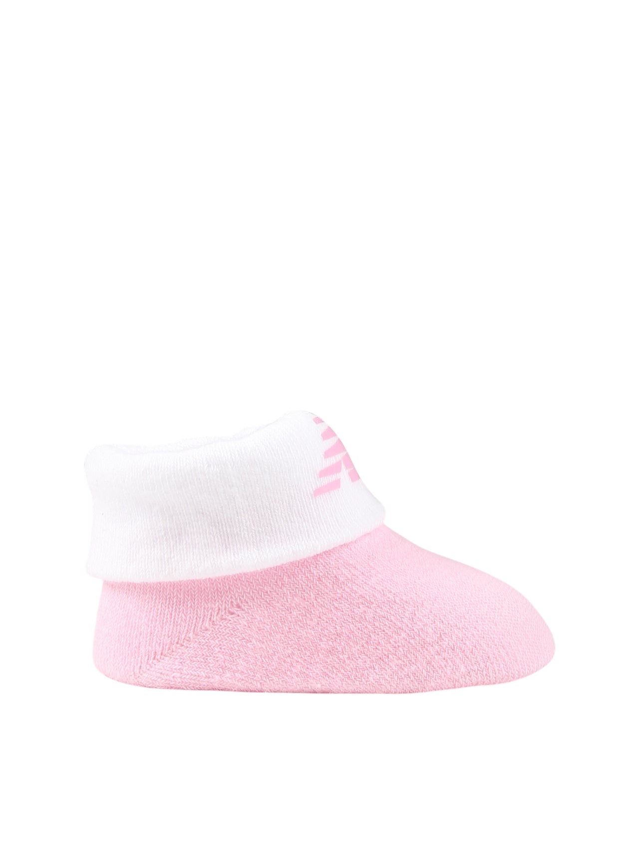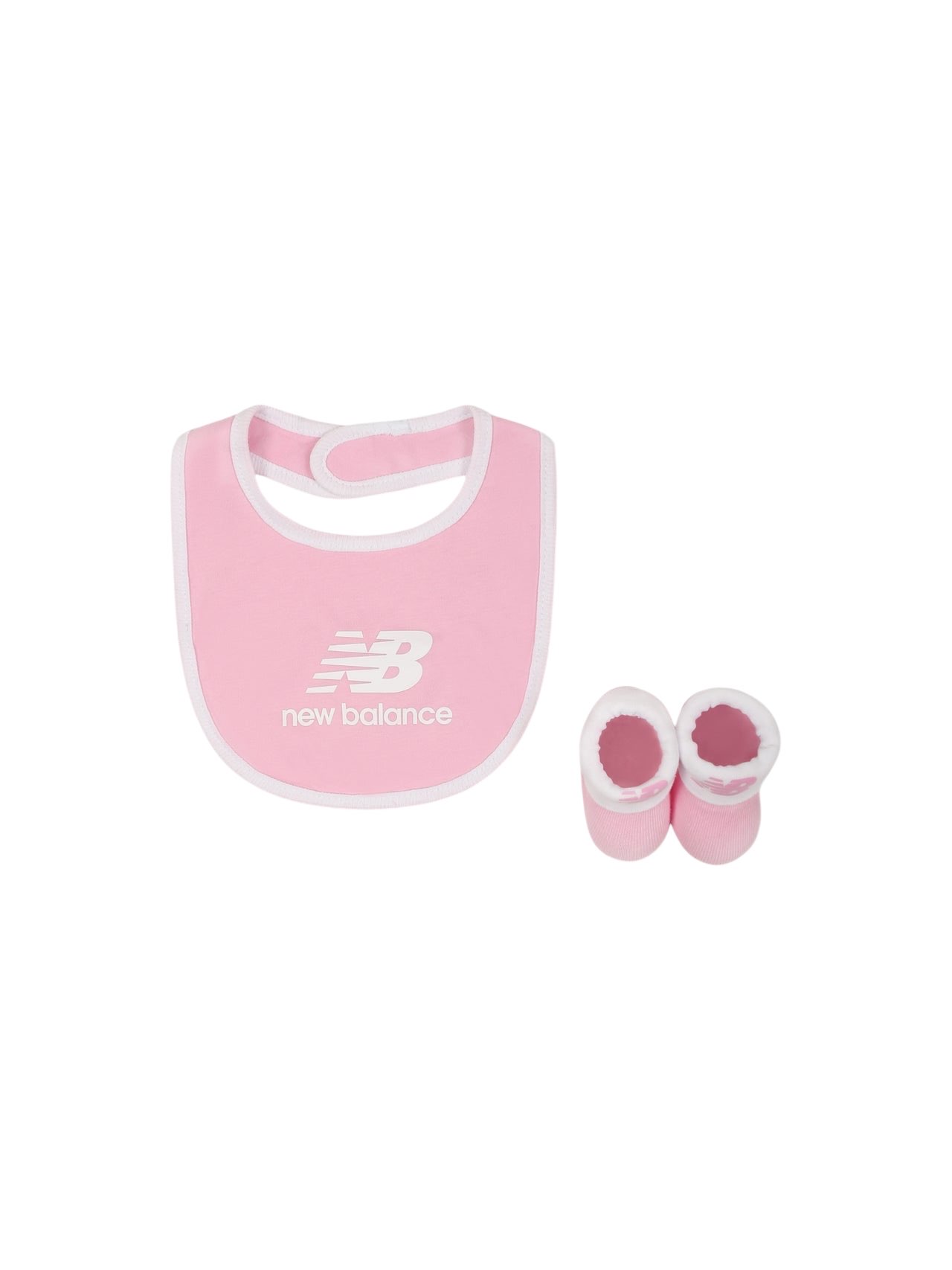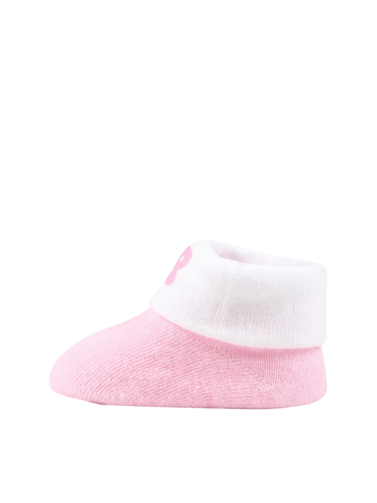 Set accessori rosa composto da bavaglino e calzini; bavaglino con chiusura a strappo sul retro e profili bianchi; calzini con risvolto bianco a contrasto. È decorato con logo.