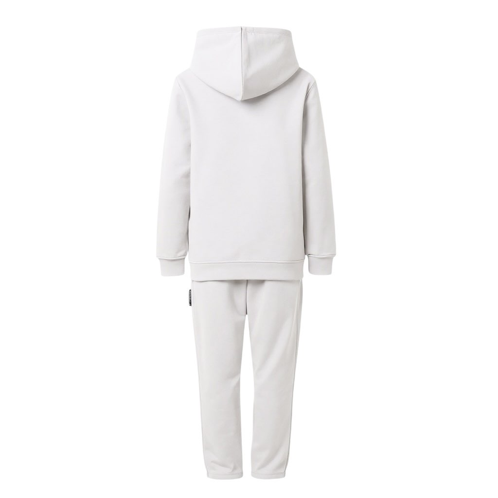 Completo blue vapor in misto cotone garzato, composto da felpa e pantaloni. Felpa a maniche lunghe, a giro polsini e orlo a costine; é decorata con logo gommato, sulla parte anteriore. Pantaloni con vita elasticizzata, coulisse, tasche laterali e caviglie elasticizzate; sono decorati con logo su una gamba.