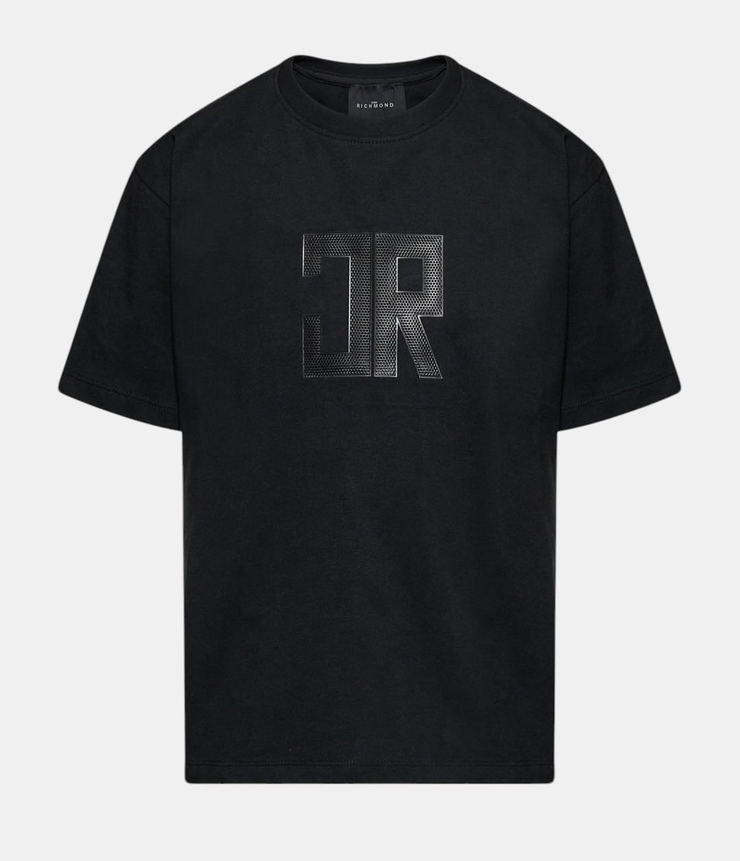 T-shirt John Richmond in cotone morbido e traspirante, caratterizzata da lavorazione jersey che garantisce comfort e vestibilità quotidiana. Il design presenta logo JR frontale con effetto texture a rilievo e stampa lettering sul retro, con girocollo rifinito e linea essenziale che valorizza la costruzione del capo. Perfetta per outfit casual contemporanei, si abbina facilmente a denim o capi sportivi per uno stile urbano curato.