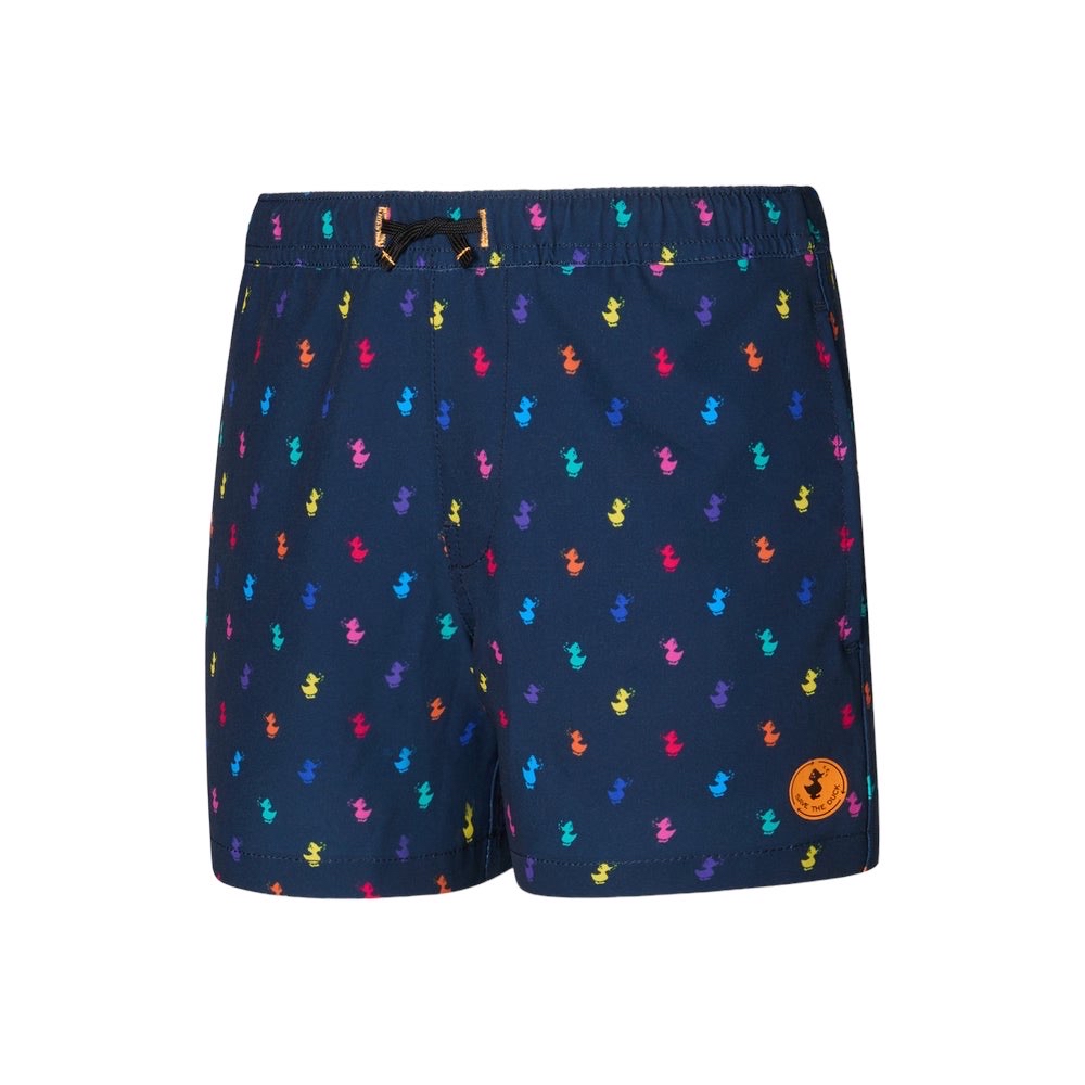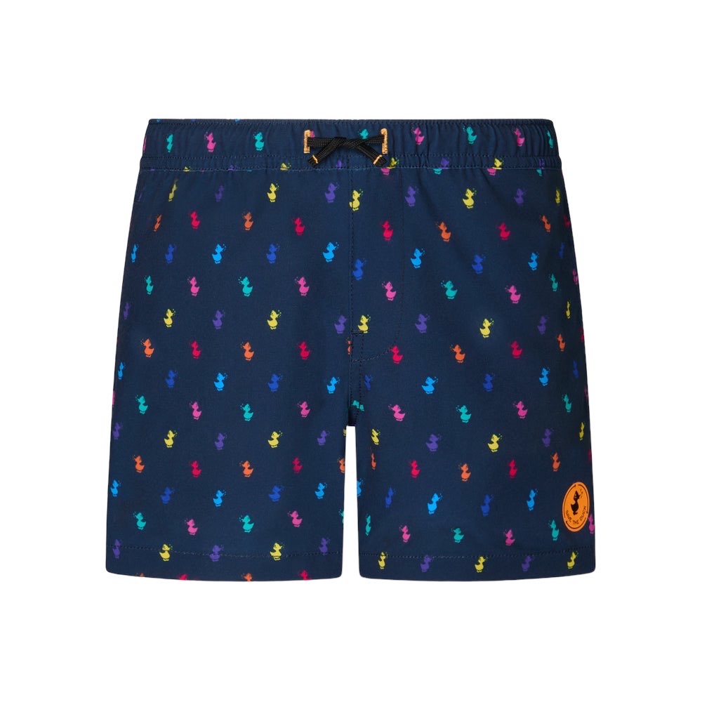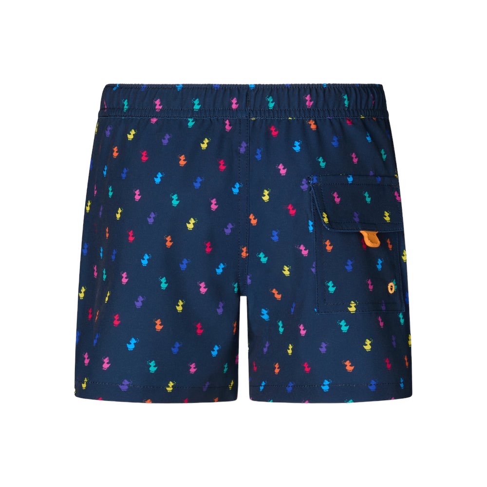 Protagonista delle giornate in spiaggia, il costume da bagno per bambini Getu è stampato all-over con fantasie colorate. Comodo da indossare grazie all'elastico con coulisse in vita e agli slip interni in rete, presenta tasche laterali sui lati e una sul retro. Il badge rotondo applicato a caldo e la decorazione a forma di becco arancione sulla tasca posteriore sono i dettagli distintivi Save The Duck.