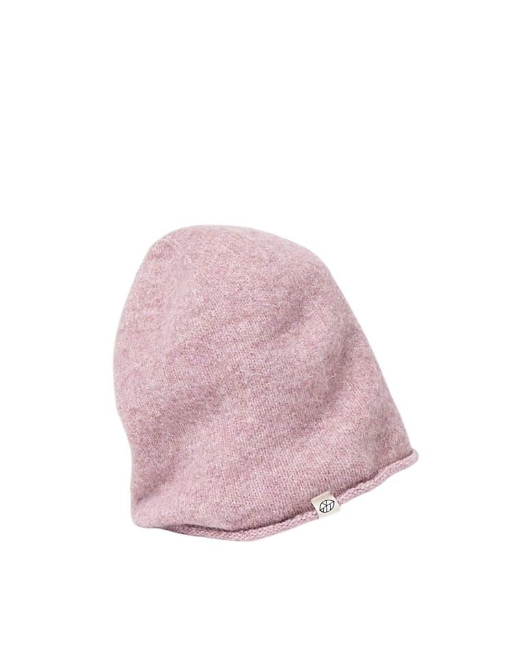 Berretto a tinta unita in tricot in una morbida miscela di poliestere riciclato e lana. Morbidissimo al tatto e rifinito con una torsione sull'orlo, il design è leggermente incavato quando viene indossato per un look casual e contemporaneo, ideale pe