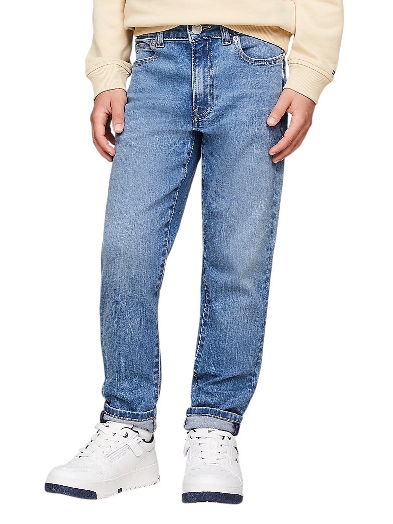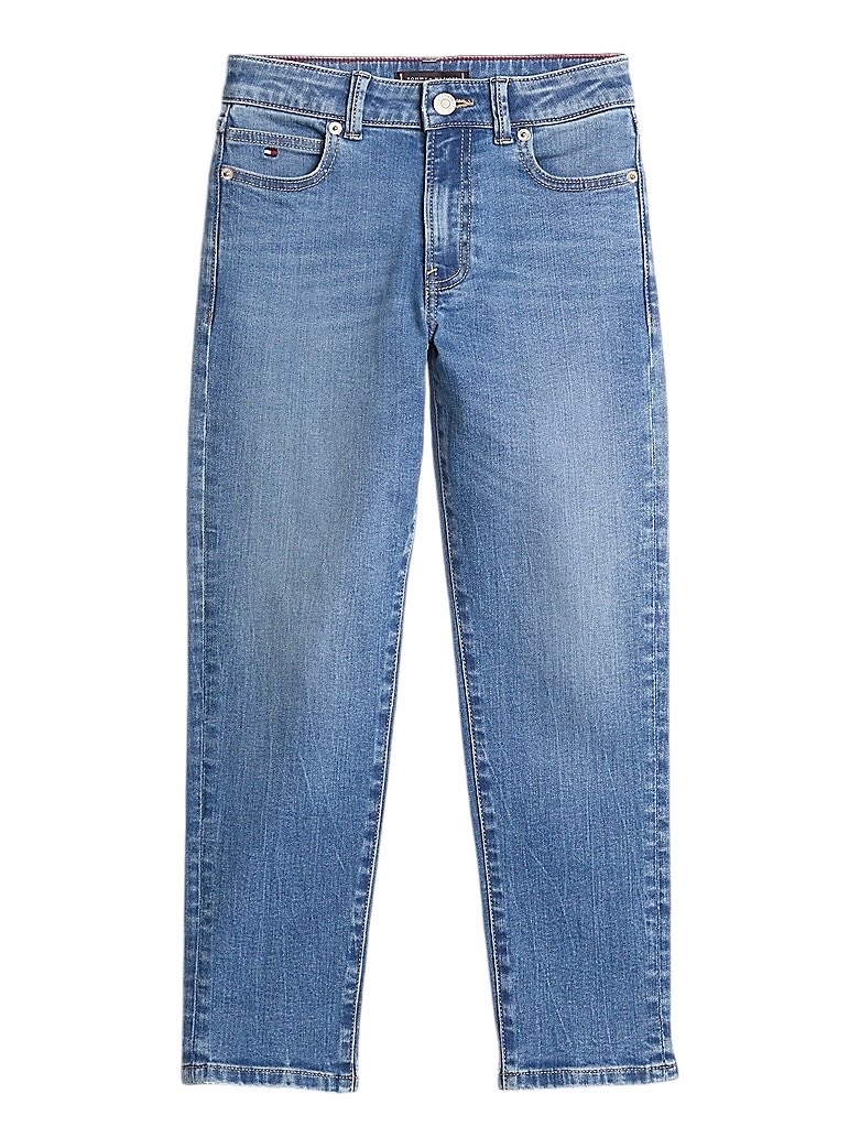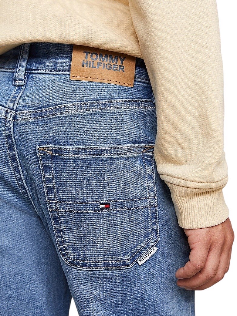 • Denim di cotone stretch • Effetto sbiadito • Chiusura con zip e bottone • Modello cinque tasche • Branding Tommy Hilfiger • Bandierina Tommy Hilfiger ricamata sul taschino portamonete e sulla tasca posteriore