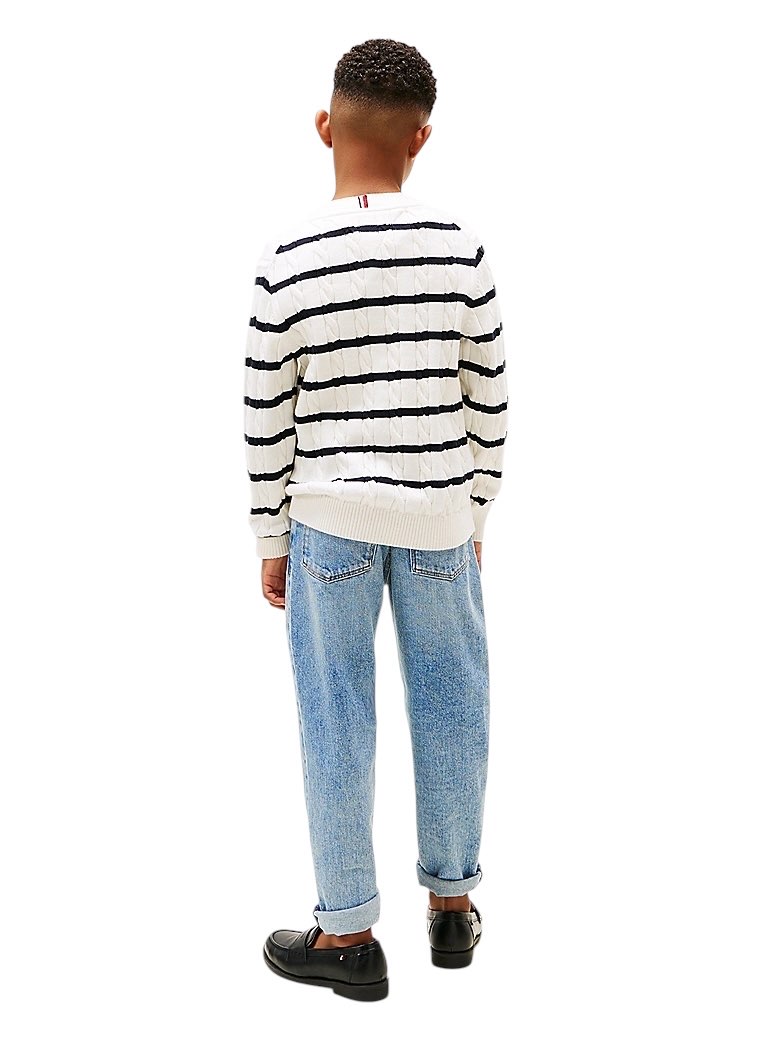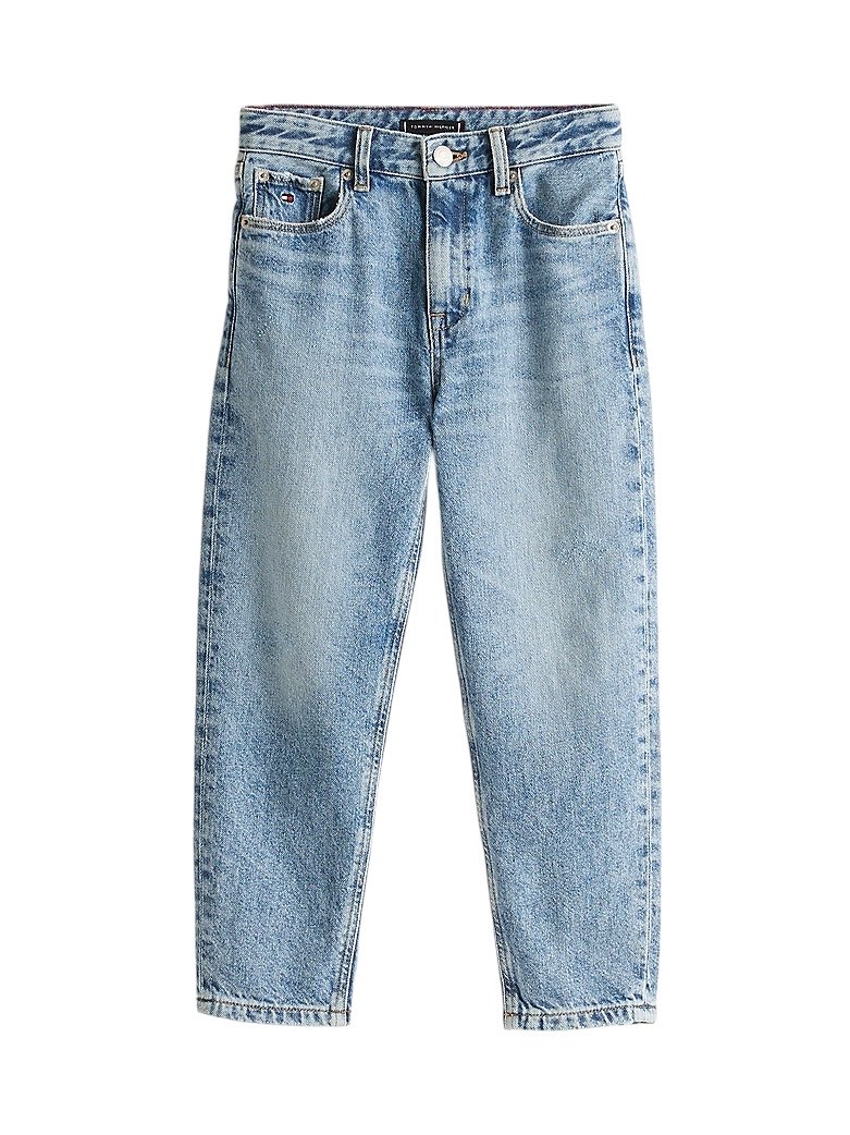 • Denim rigido • Scoloriture sulle gambe • Baffature sulle cosce • Chiusura con zip e bottone • Modello cinque tasche • Branding Tommy Hilfiger • Bandierina Tommy Hilfiger ricamata sul taschino portamonete e sulla tasca posteriore