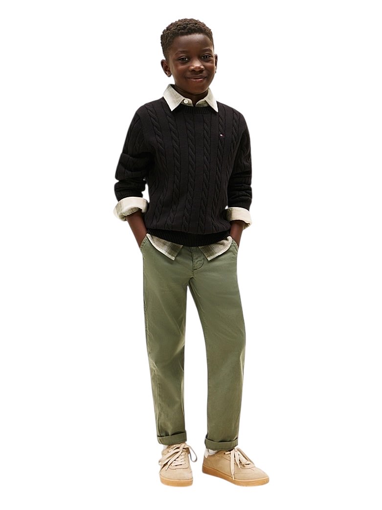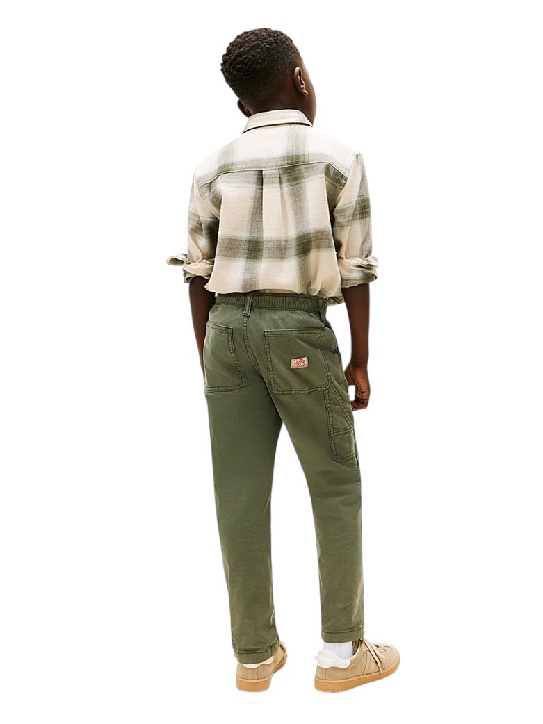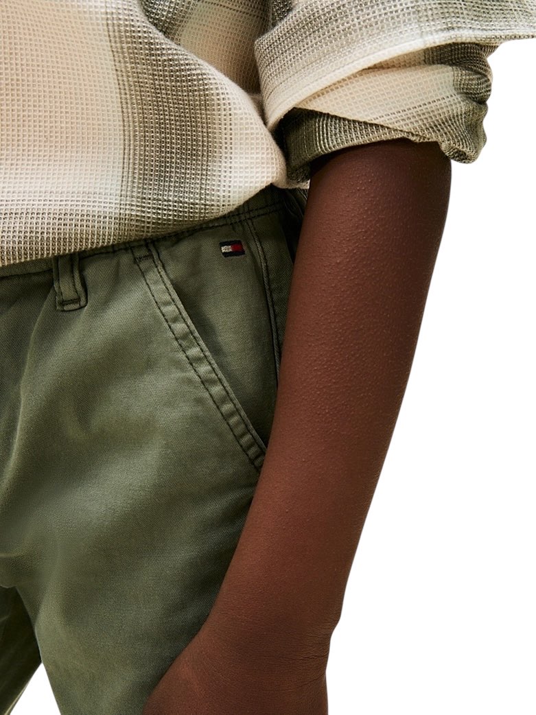 • Cotone stretch • Trama a spina di pesce • Vita semielastica • Chiusura con zip e bottone • Due tasche ad angolo in vita • Tasca cargo laterale • Due tasche applicate sul retro • Logo patch Tommy Hilfiger sul retro • Branding Tommy Hilfiger • Bandierina Tommy Hilfiger ricamata sul fianco