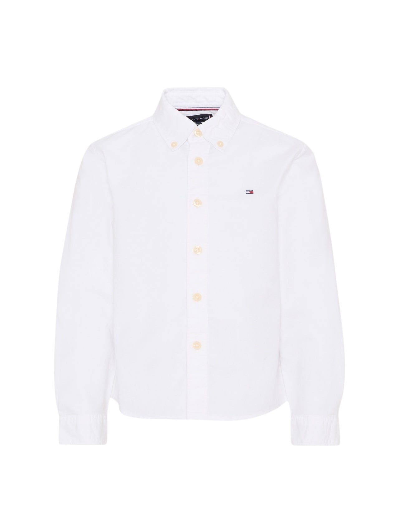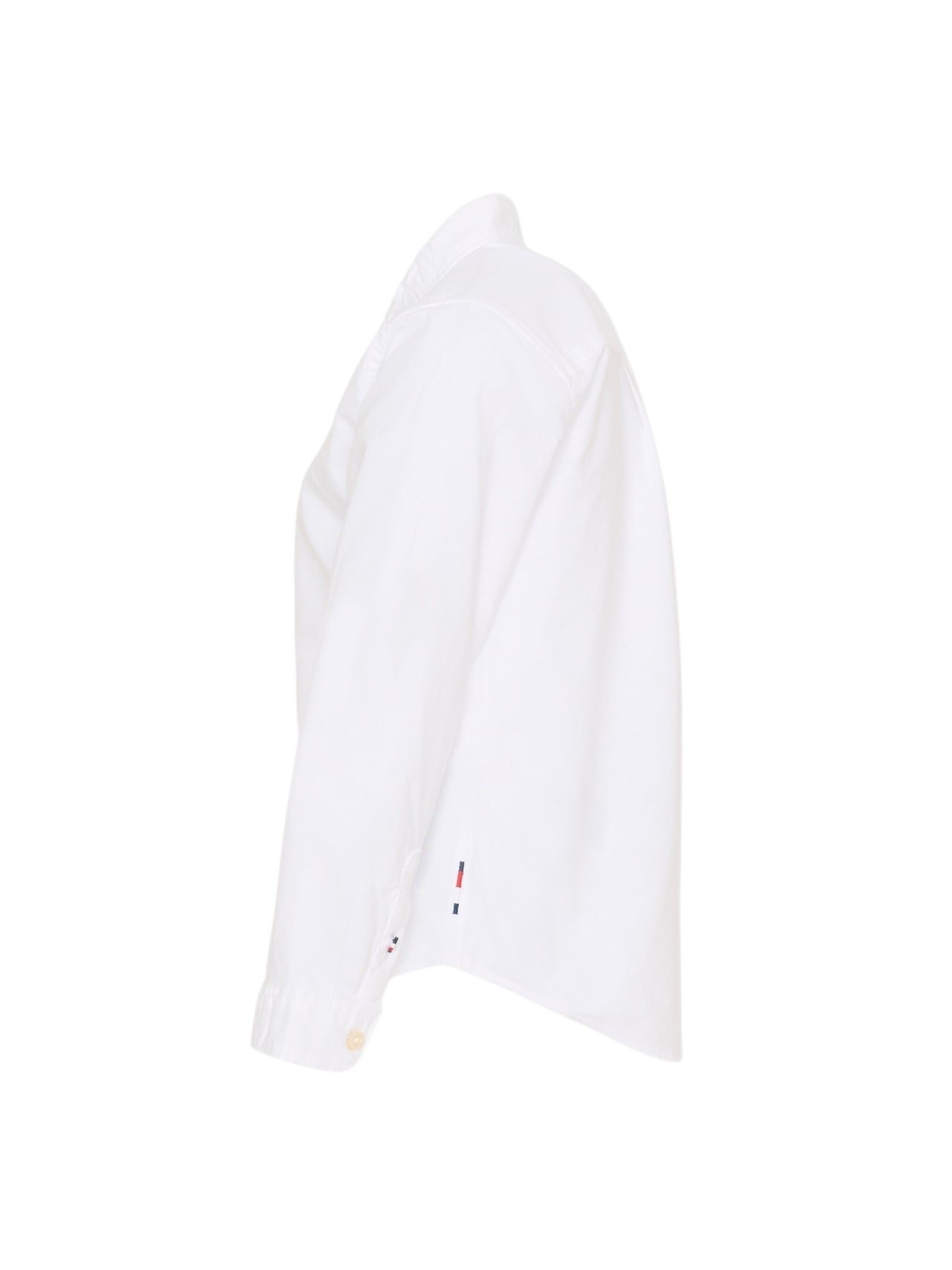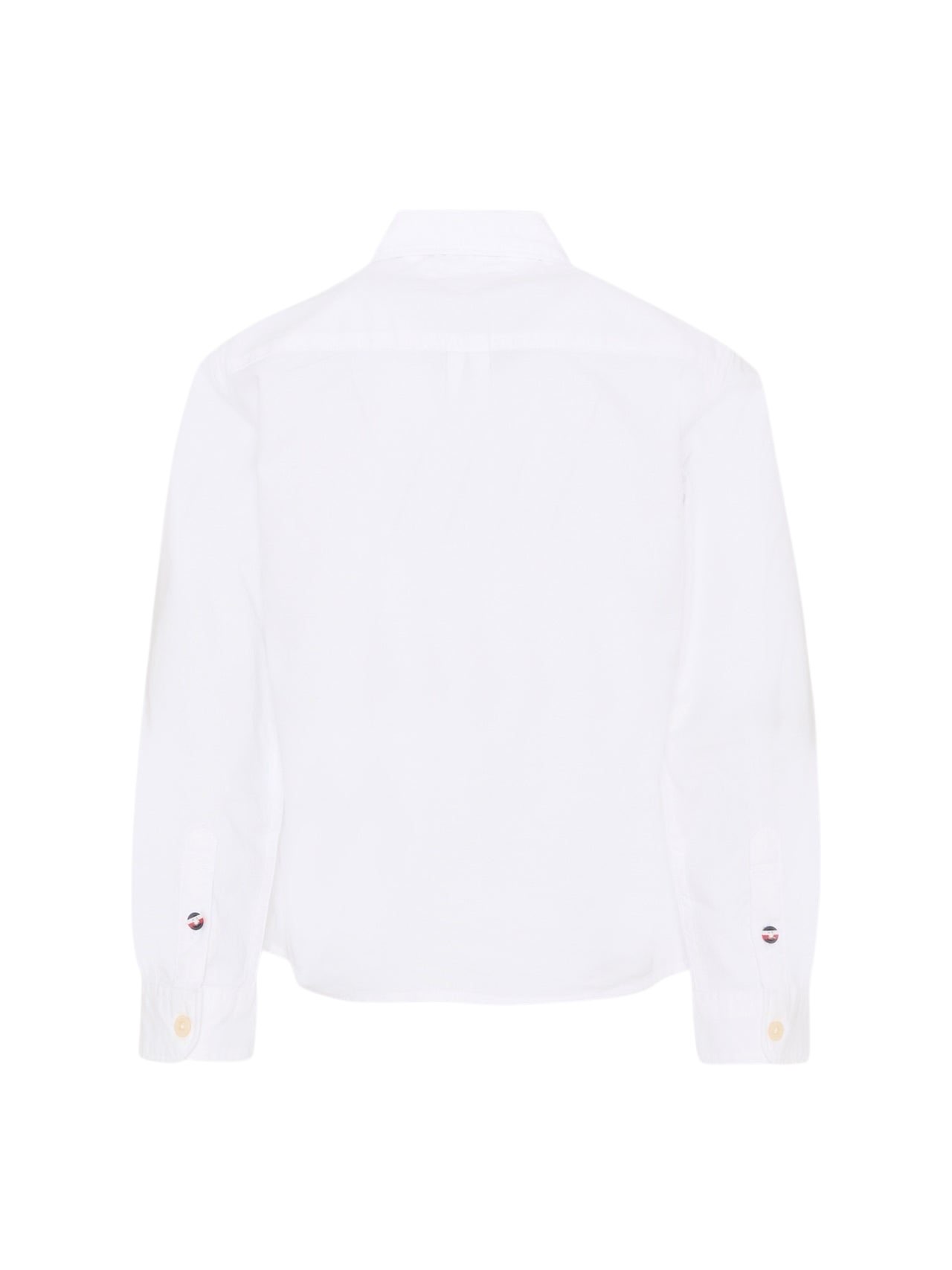Camicia bianca in cotone, a maniche lunghe, con colletto a punta, chiusura frontale con bottoni e bottoni con dettaglio blu, bianco e rosso sui polsi; è realizzata al 95% con cotone biologico. È decorata con iconica bandierina ricamata sul petto.