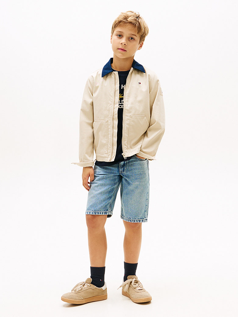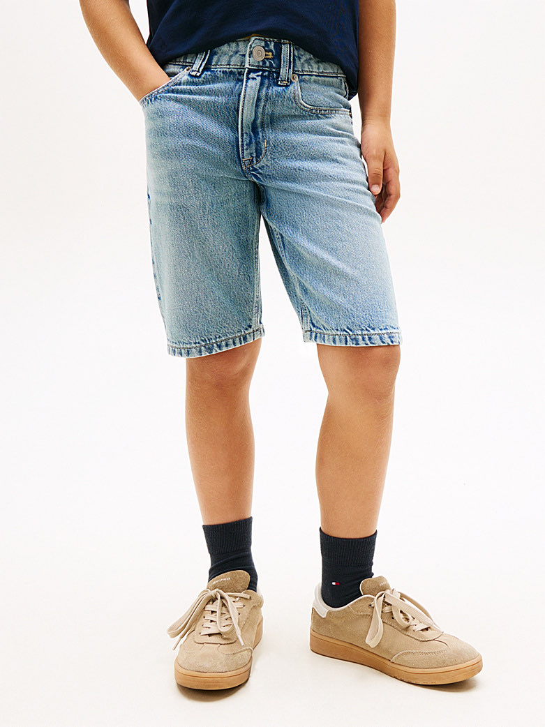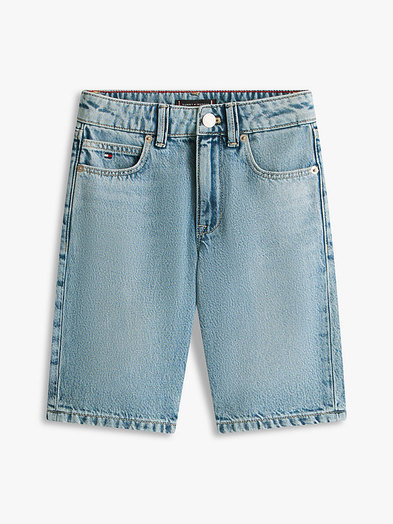 • Denim di misto cotone • Scoloriture sulle cuciture • Chiusura con zip e bottone • Modello cinque tasche • Bottone e rivetti in metallo con branding • Branding Tommy Hilfiger • Bandierina Tommy Hilfiger ricamata sul taschino portamonete e sulla tasca posteriore