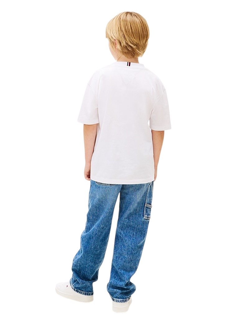 • Jersey di puro cotone • Girocollo • Nastro iconico sul retro del collo • Stampa con bandiera Tommy Hilfiger sul petto • Branding Tommy Hilfiger • Bandierina Tommy Hilfiger ricamata sulla manica