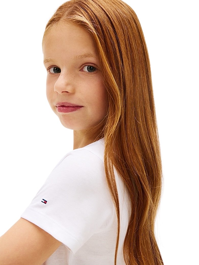 • Jersey effetto vintage • Girocollo • Nastro iconico sul retro del collo • Logo Tommy Hilfiger metallizzato sul davanti • Branding Tommy Hilfiger • Bandierina Tommy Hilfiger ricamata sulla manica