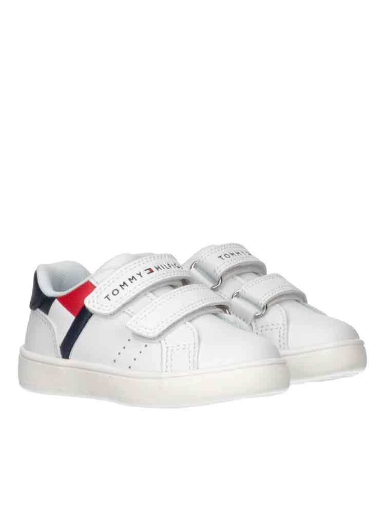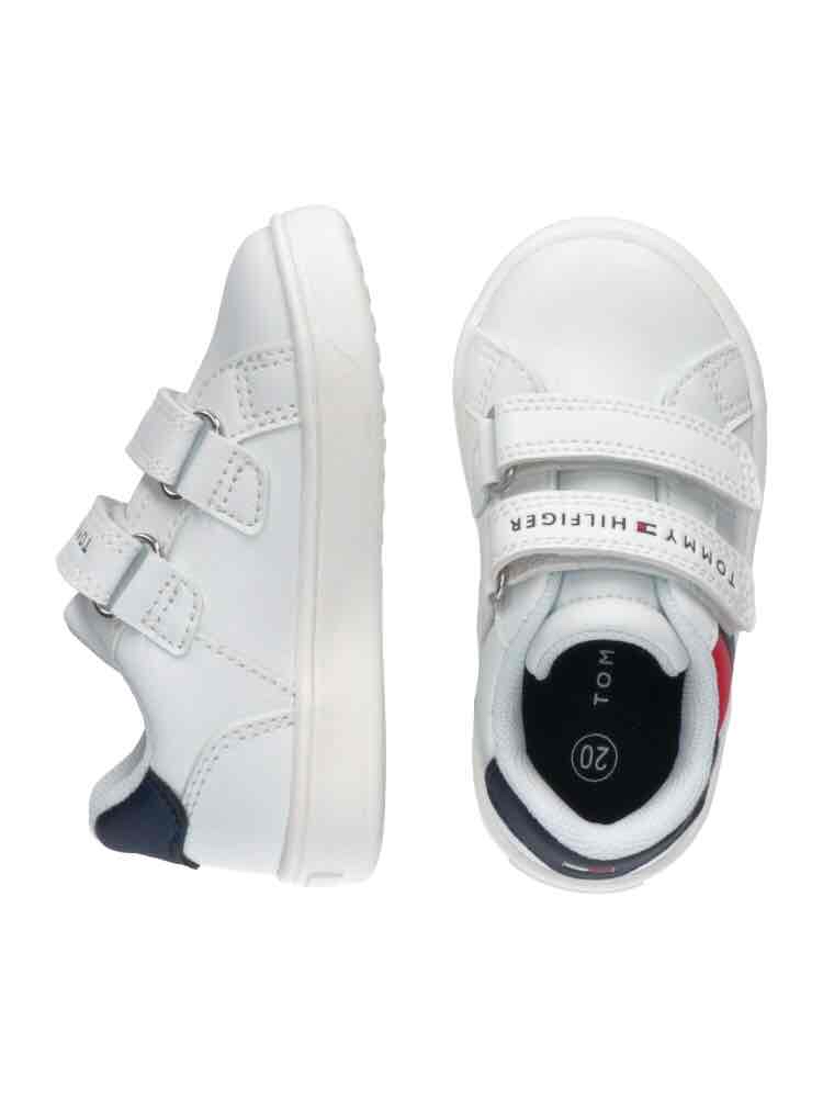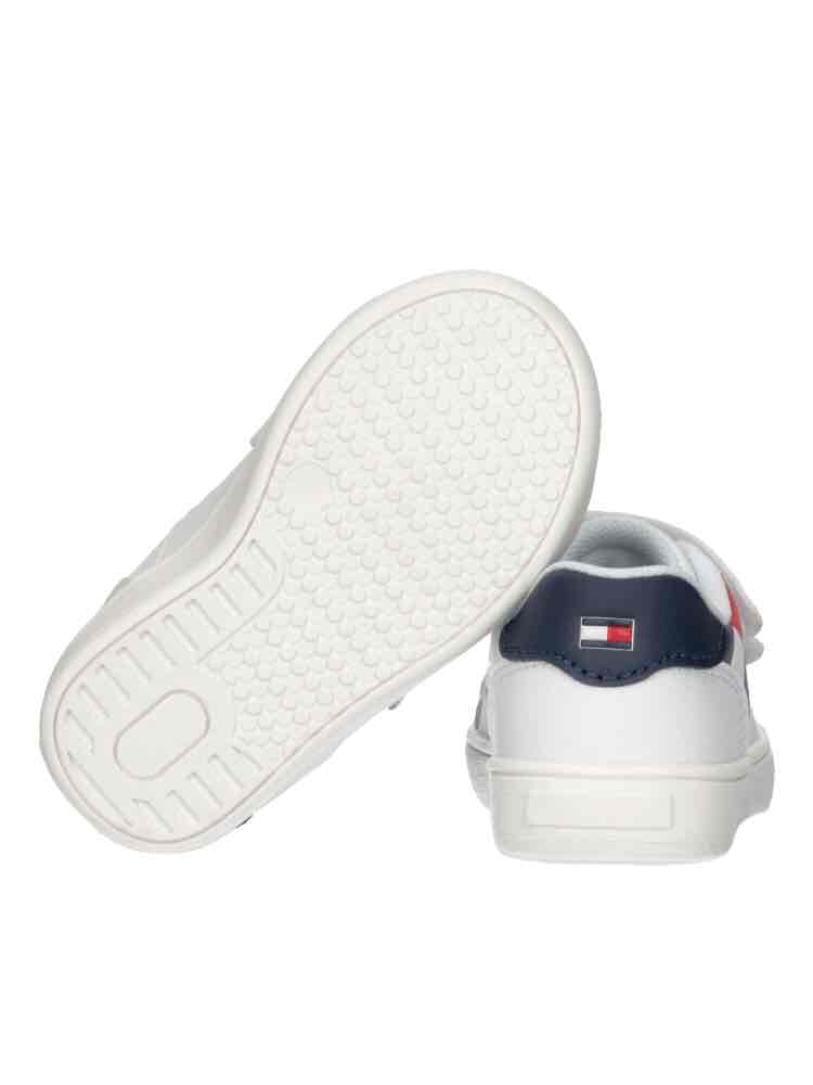 Sneakers Tommy Hilfiger Jeans, realizzate in pelle sintetica bianca con logo stilizzato laterale. Sono un must-have per chiunque ami lo stile casual senza rinunciare all'eleganza. Il design minimal e raffinato si combina con la massima comodità, rendendole perfette per qualsiasi occasione.