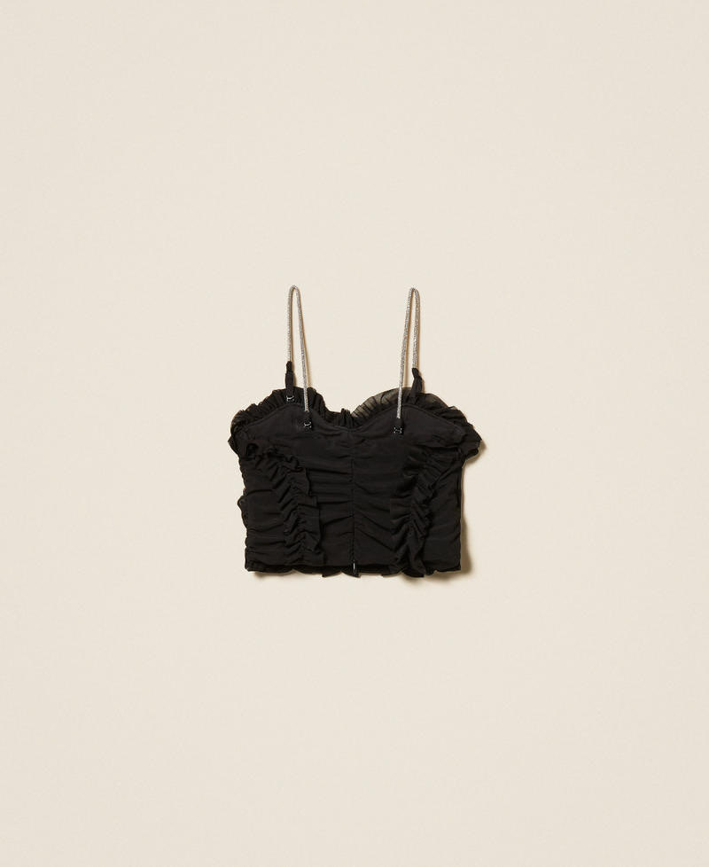 Top da bambina in maglia di viscosa rasata con collo tondo, giromanica e bottoni logati in metallo, linea fitted.